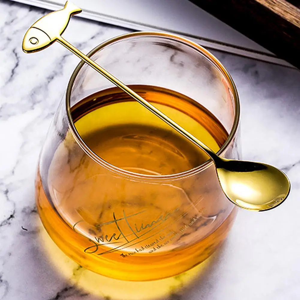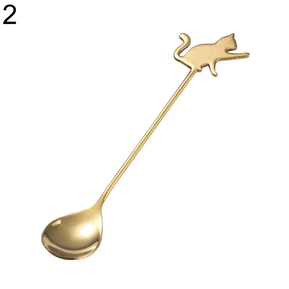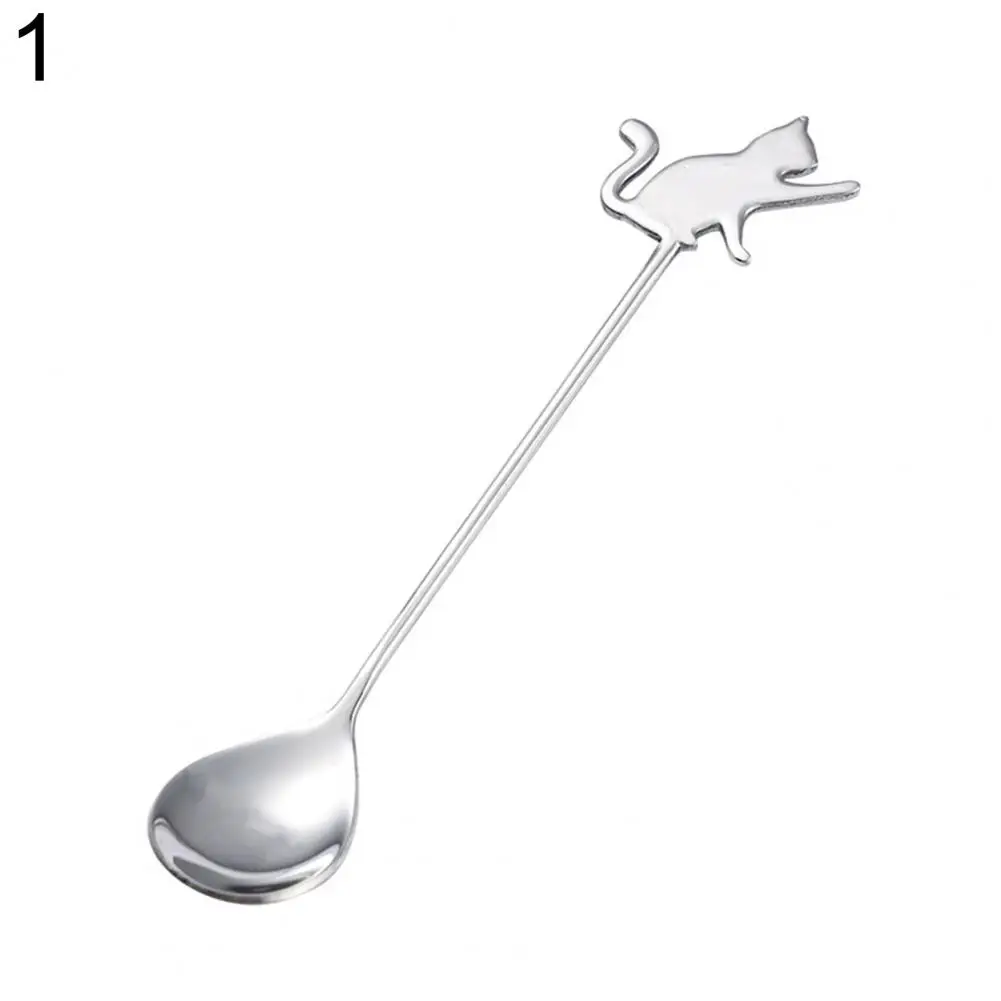 Милая кошка рыба кофе перемешивание десерт нержавеющая сталь чайная ложка столовые приборы