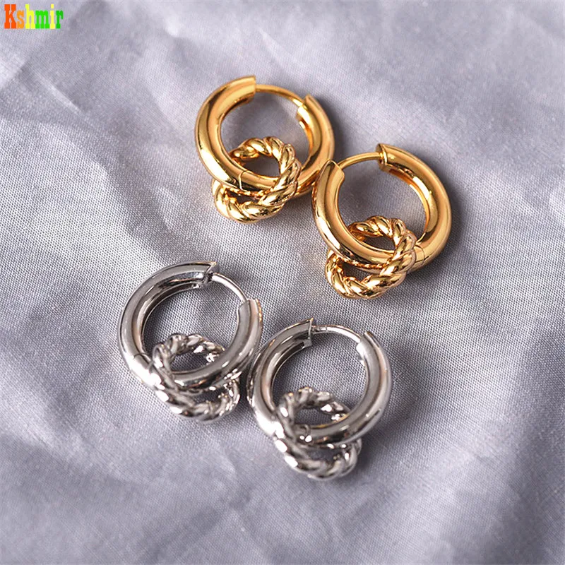 Kshmir новые модные круглые серьги из нержавеющей стали с металлическим рисунком, серьги с двойным кольцом, ювелирные изделия 2021