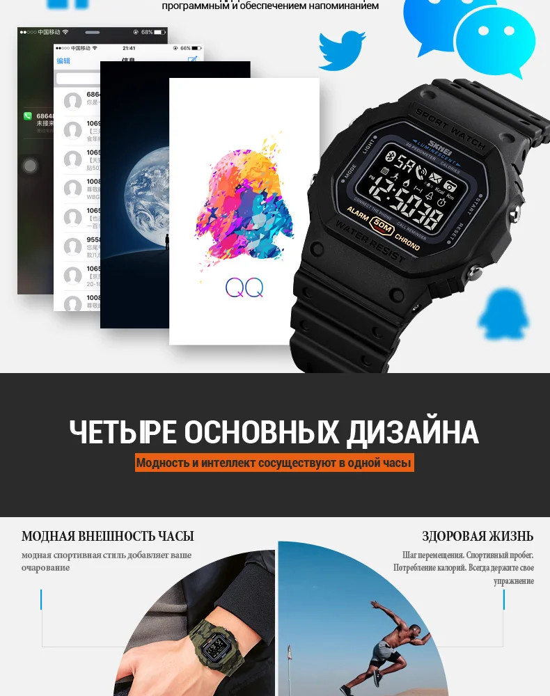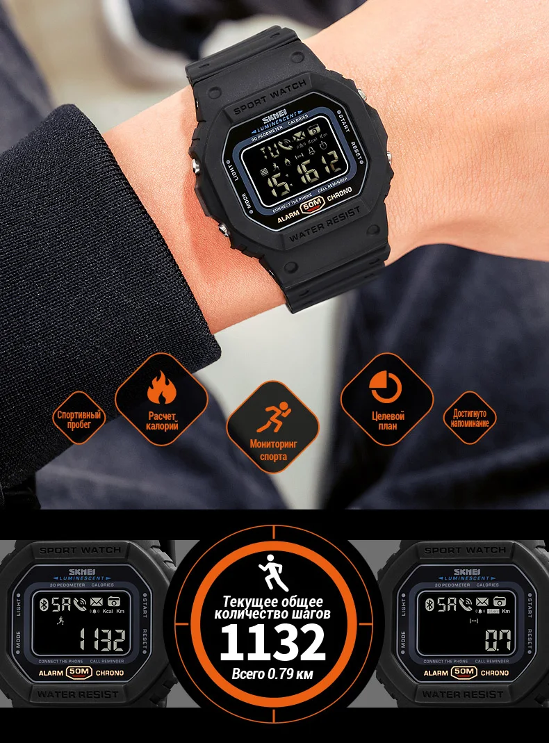 SKMEI смарт-Электроника мужские часы вызов сообщение напоминание калорий Фитнес-трекер Bluetooth мужские умные часы reloj inteligente 1743