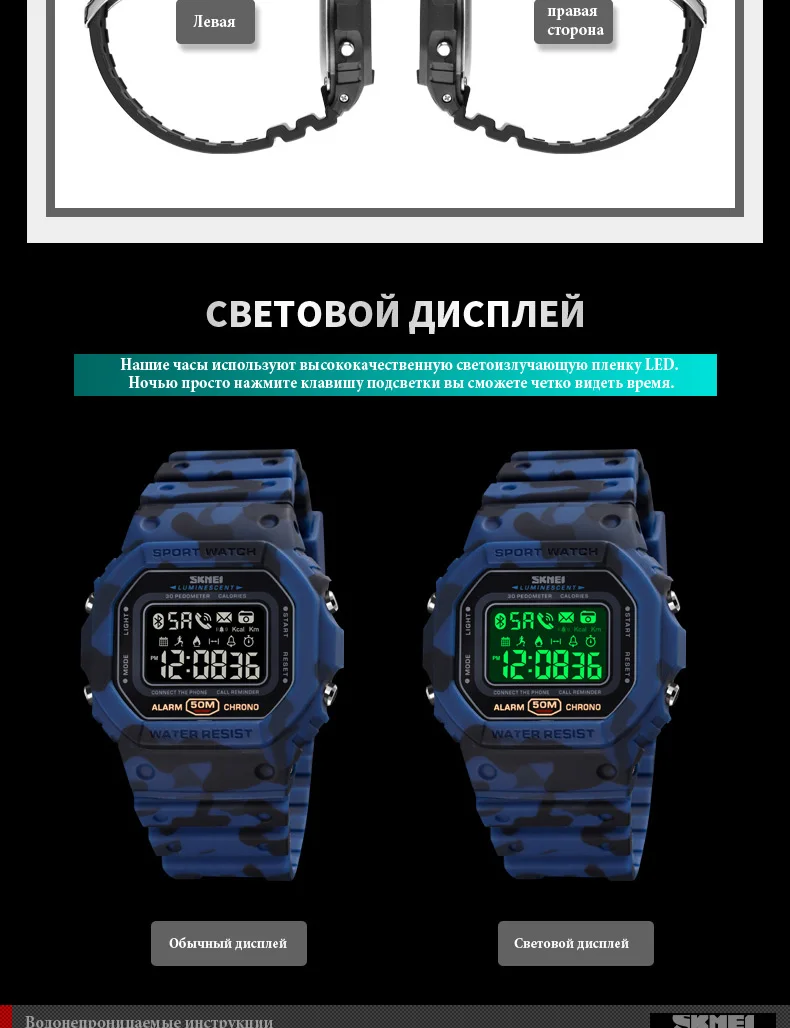 7. Водонепроницаемость: 50 м/5 бар