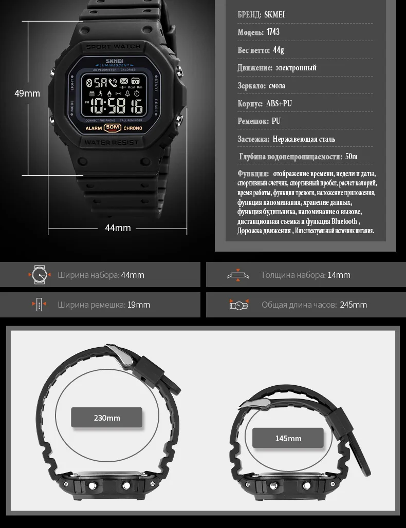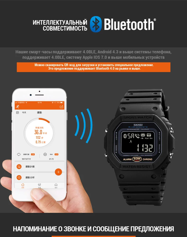 1. Модель изделия: SKMEI Bluetooth часы 1743 мужские