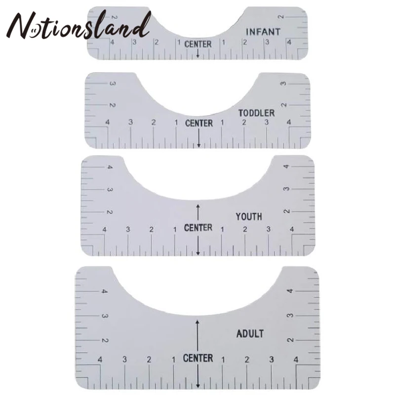 4 шт., высокоточная линейка для выравнивания футболок, инструменты для рукоделия для взрослых, подростков, малышей и детей, размер пластиковый для футболки линейки