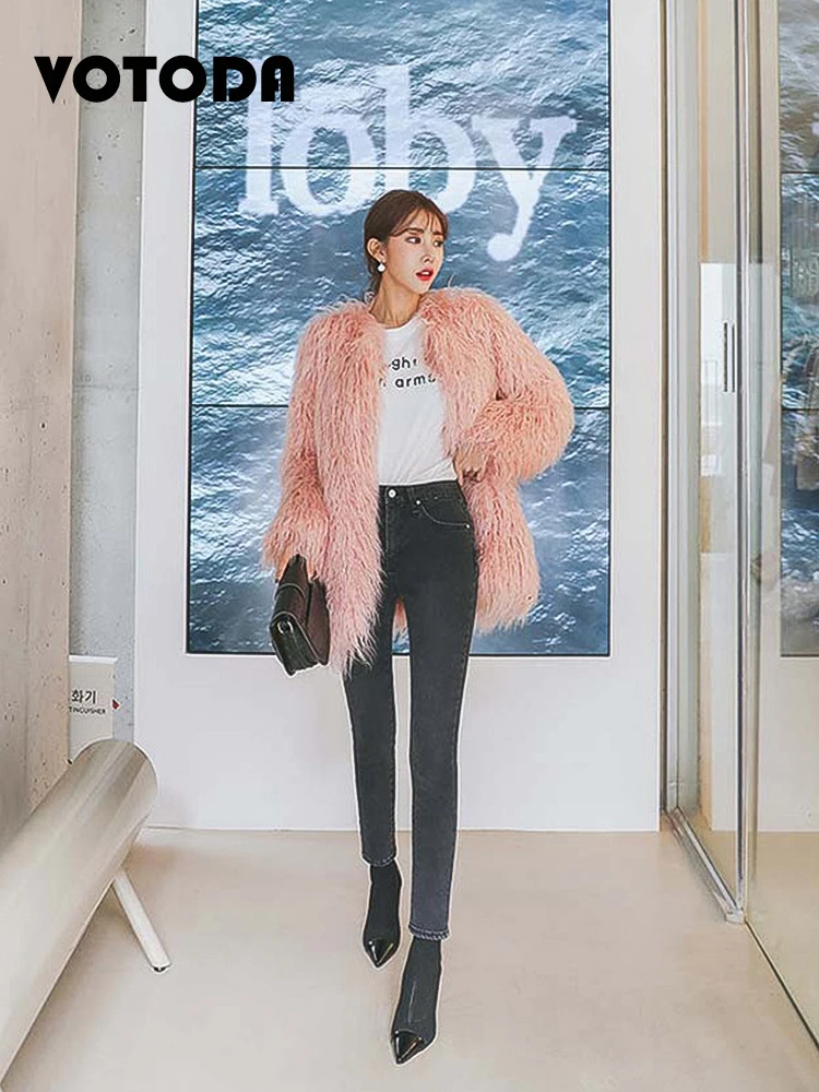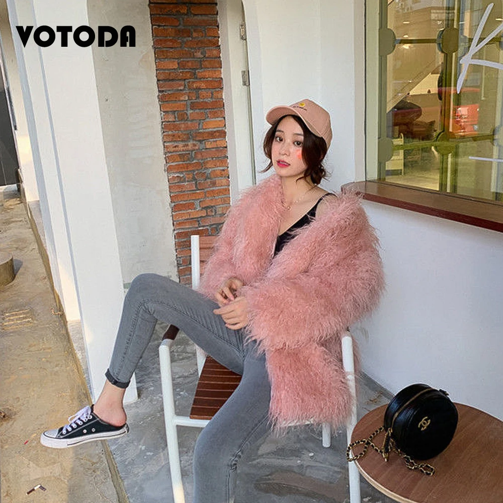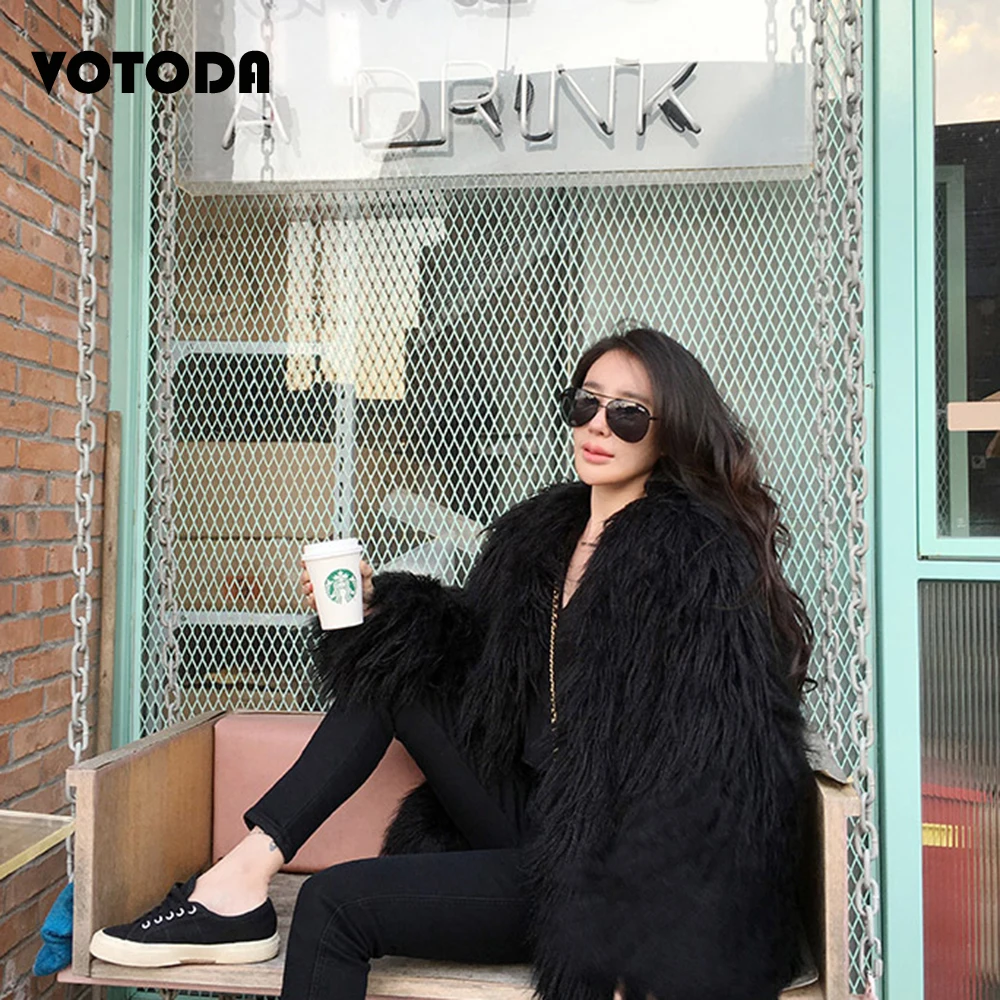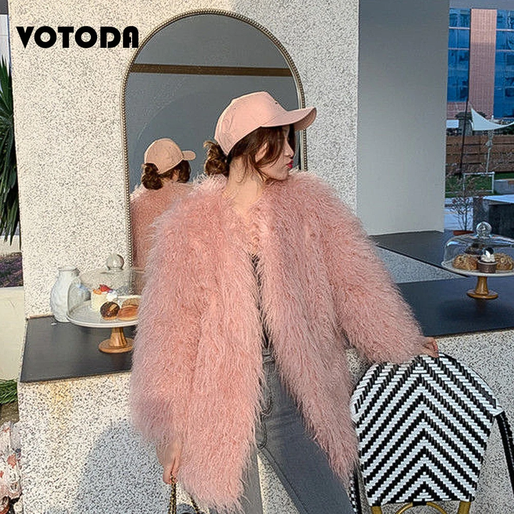 Зимнее пальто из овечьей шерсти для женщин, теплое пальто из искусственного меха, пушистая меховая шерстяная куртка, пикантная верхняя одежда, Дамское меховое пальто, верхняя одежда