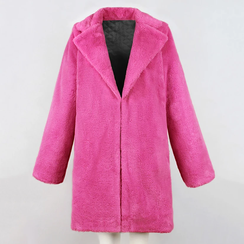 Женское пальто с искусственным мехом розового и красного цвета, осенне-зимнее однотонное пальто для женщин, уличная одежда, элегантный Европейский теплый топ средней длины, опалубка