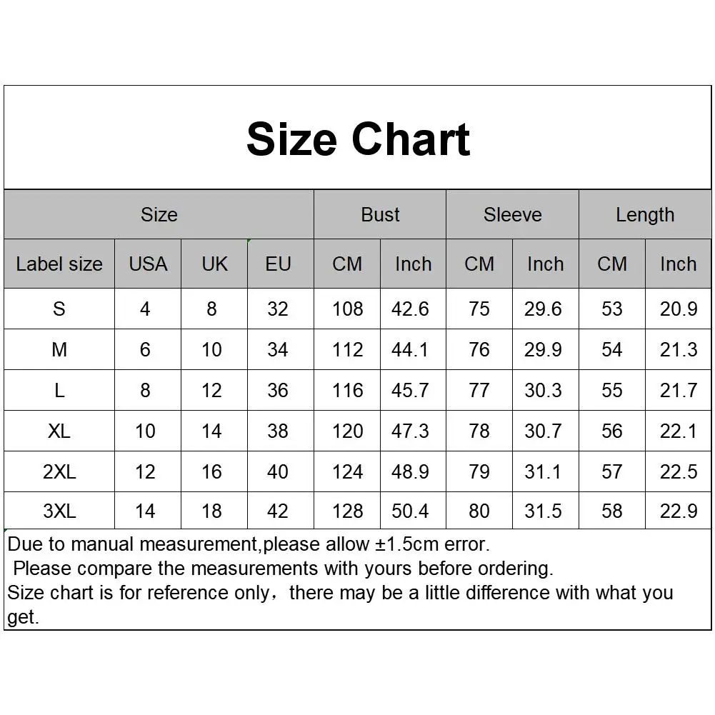 [Наш Размер XXXL] Обхват груди: 128 см/50,4 дюйма, рукав: 80 см/31,5 дюйма, длина: 58 см/22,9 дюйма (прибл.)
