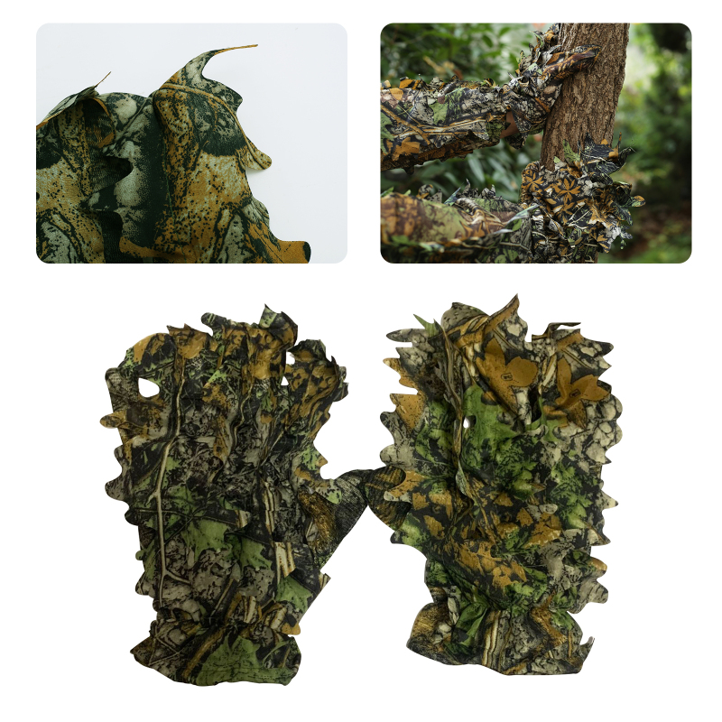 2. Хороший эффект сокрытия: с 3D Дизайном листьев, перчатки имеют отличный Камуфляжный эффект, очень подходит для использования в лесу.