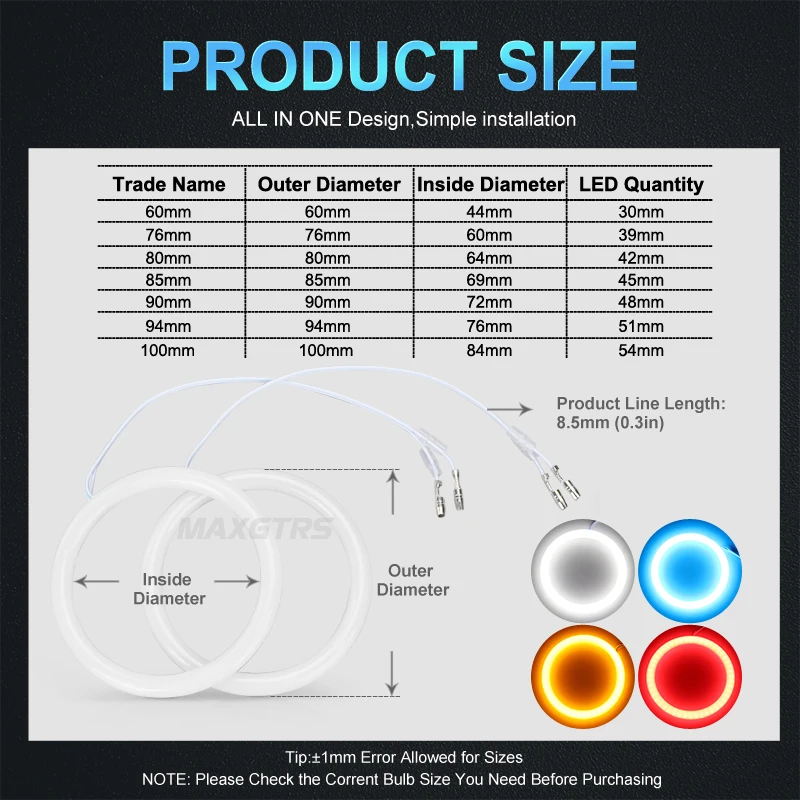 Характеристика:Совершенно новый и высокое качество.Гибкий и прочный.Уникальный дизайн, водонепроницаемый и более стабильный.Длительный срок службы и низкое энергопотребление.Устанавливается просто, красиво и полезно.Универсальный подходит для любых автомобилей, внедорожников или грузовиков.Защита от столкновений, пыли и брызг.Светодиодный лампы не такие яркие, как стандартные лампы накаливания.Отсутствие загрязнения, отсутствие шума, отсутствие электронных помех, более эффективное.Это супер свет, имеет быструю реакцию и хороший светящийся эффект.Новый стильный дизайн и высокая производительность, этот светодиодный светильник для автомобиля-отличный аксессуар для вашего автомобиля!Технические характеристикиТип чипа: 3528Напряжение: 12 В постоянного токаВнешний диаметр: 60.76.80.85.90.94.100 ммПосылка включает в себя: два кольца halo с 2 лампамиЦвет: белый/красный/желтый/голубой белый + желтыйУниверсальное использование для всех автомобилей, размер колец которых относится к следующему диапазону.Всегда мечтал приобрести некую прикольную штучку для своего душа. После нескольких часов поиска наткнулся на данный товар... Светодиодная насадка мне... Читать отзыв полностью...
