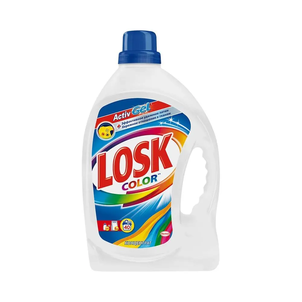 - Гель для стирки LOSK для цветного белья подходит для стирки самых актуальных видов тканей. Стиральное средство LOSK рекомендовано для цветных изделий из хлопчатобумажных, льняных, синтетических тканей и тканей из смешанных волокон (кроме шерсти и шёлка).