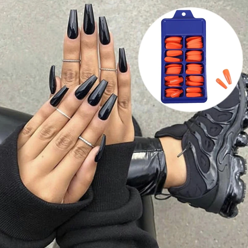 Полное покрытие, трапециевидный гроб, Длинные накладные ногти Советы: легко пилить, покрасить и нанести.