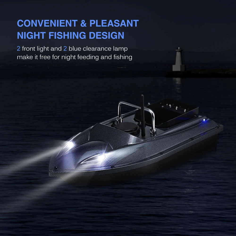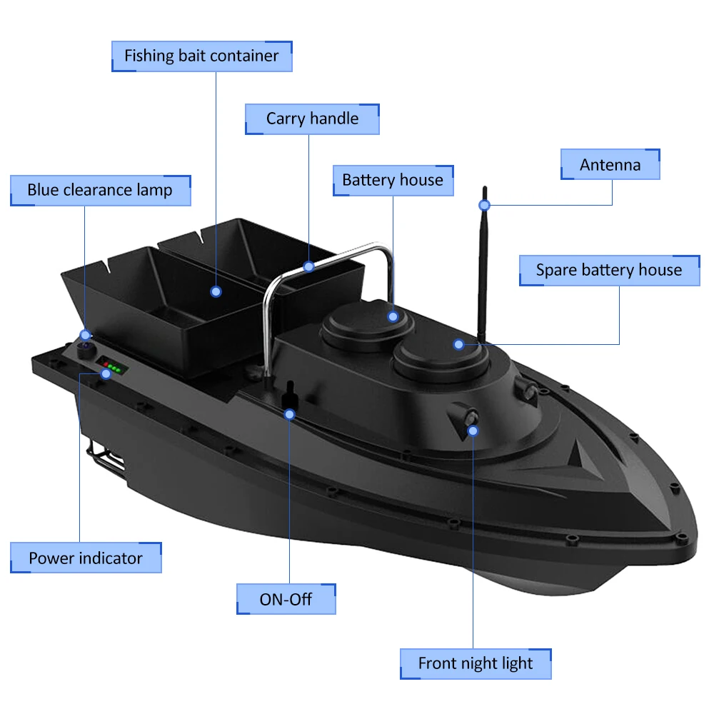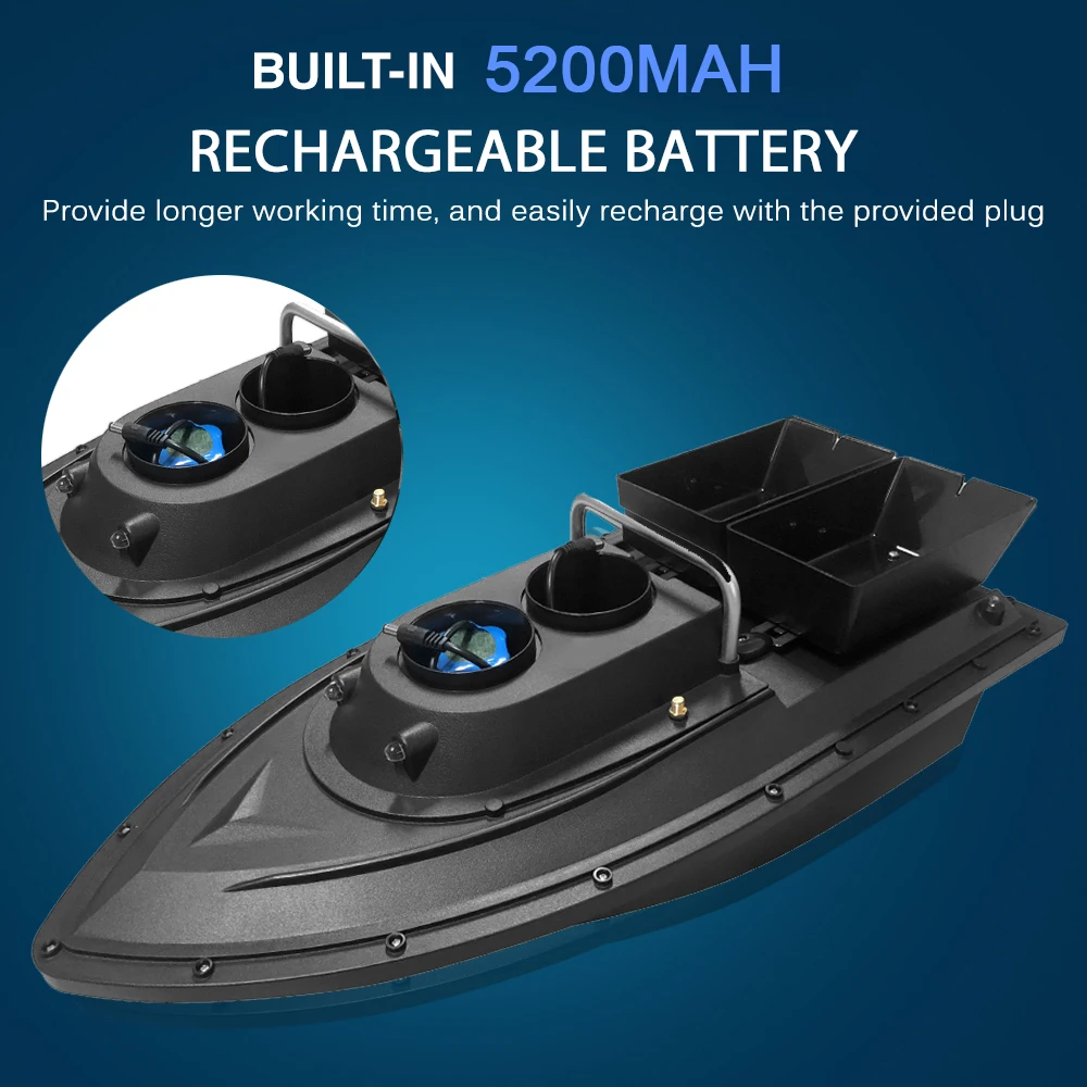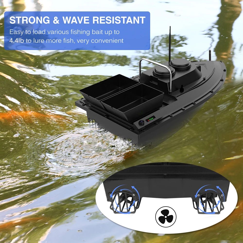 Беспроводное управление с функцией GPS позволяет выпустить приманку далеко в озере, реке и водохранилище. 3 контейнеры для наживки могут вмещать около 4,4 фунта приманки для всех игровых рыб. Простота в эксплуатации для любителей рыбалки или начинающих, а также для детей.