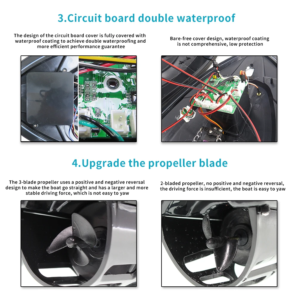Функция GPS помогает установить 4 произвольных точки позиционирования, и лодка может быть вперед и назад на основе точки, которую вы устанавливаете.