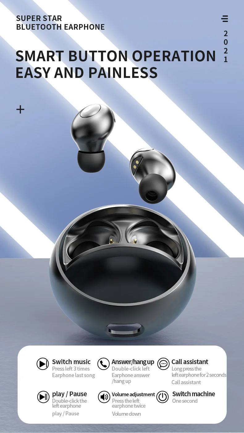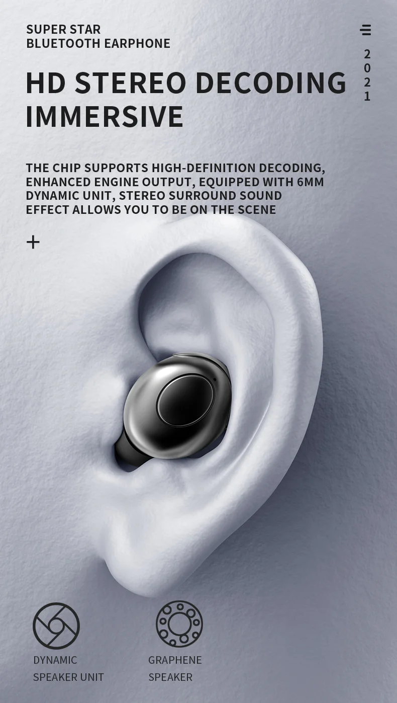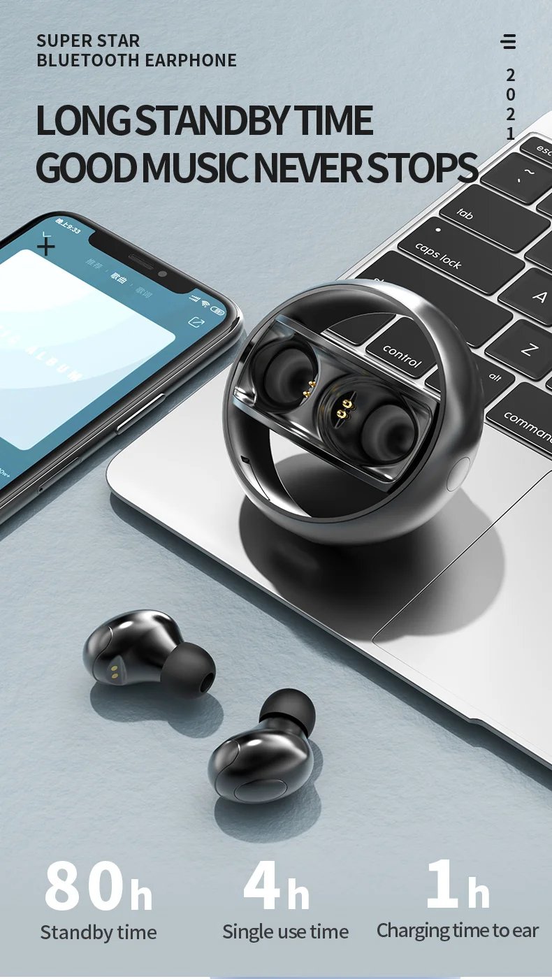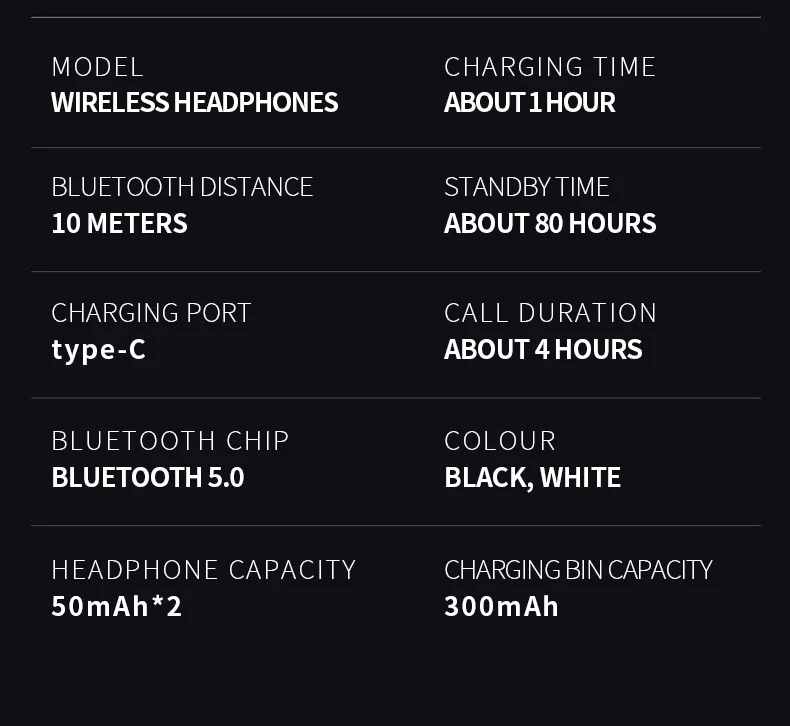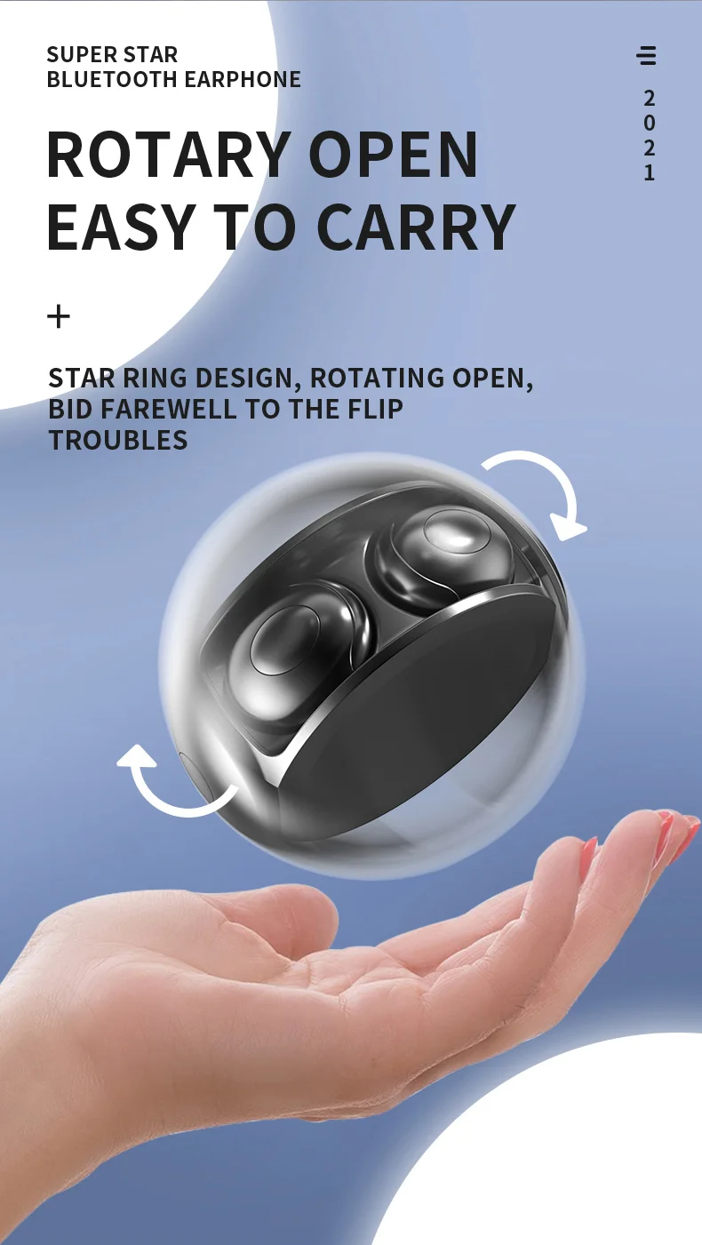 Параметры: Версия Bluetooth: последняя версия Bluetooth 5,0 Расстояние подключения: 10 м Емкость наушников: 50 мА · ч Емкость зарядного устройства: 300 мА · ч Время зарядки: около 1 часа Время работы в режиме разговора: около 4 часов Время работы в режиме ожидания: около 80 часов Класс водонепроницаемости: IPX6 Метод управления: управление физической кнопкой Функция управления звонками: Поддержка Функция управления музыкой: поддержка Функция регулировки громкости: Поддержка Голосовой помощник: Поддержка Особенности: 1. Уникальный вращающийся дизайн, более удобный для переноски Динамическое устройство диаметром 2,6 мм обеспечивает более четкий объемный стереозвук 3. Низкая задержка игровой гарнитуры, лучший игровой опыт 4. Последняя версия Bluetooth 5,0, более стабильное соединение 5. Кнопочное управление, более удобное управление 6. Сильная совместимость, Поддержка IOS/Android/Windows
