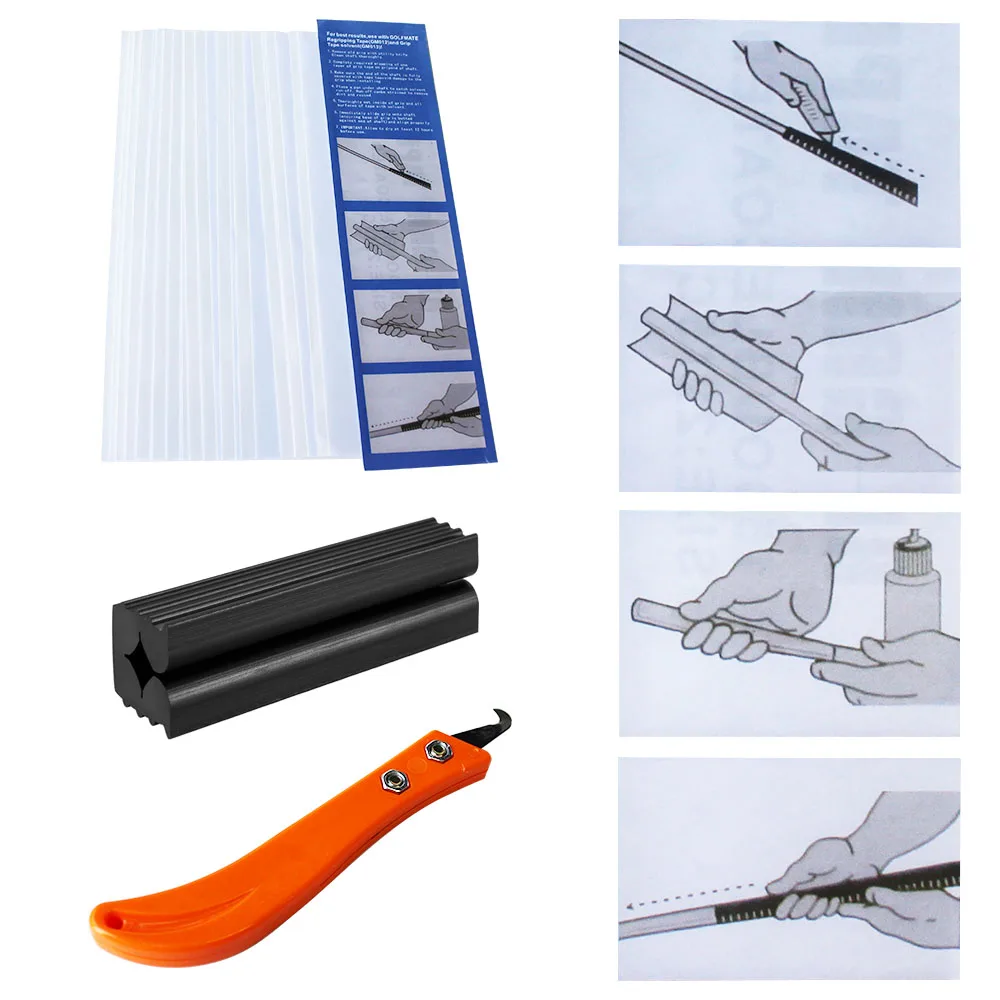 1 комплект, набор для клюшек для гольфа, резиновая тиска для ремонта, замена, инструмент для установки, 15 шт., захватные ленты + 1 шт., клинок для крючков + 1 шт., резиновый зажим для тисков