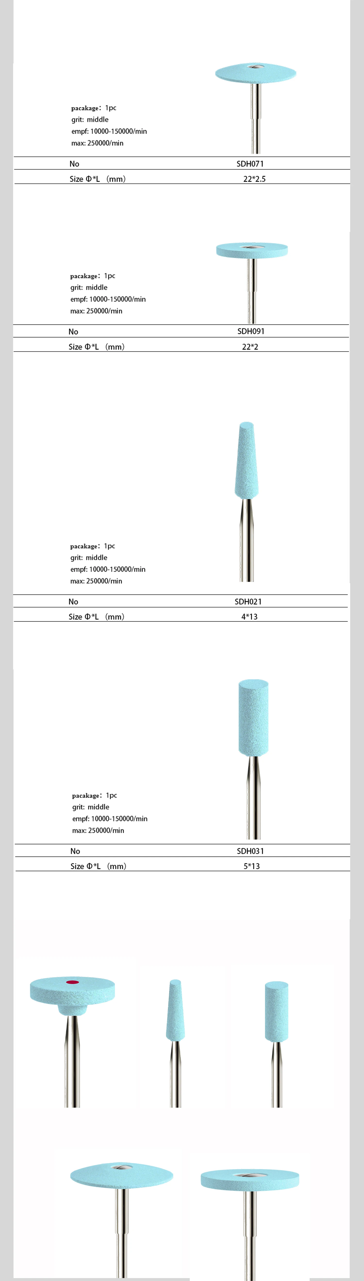 SDH091 размер (Φ * L мм):22x2mmRecommended Скорость: 10000-15,000r/мин Скорость: 25000 r/minSDH111 размер (Φ * L мм):13x2mmRecommended Скорость: 10000-15,000r/мин Скорость: 25000, оборот в минуту (r/min)