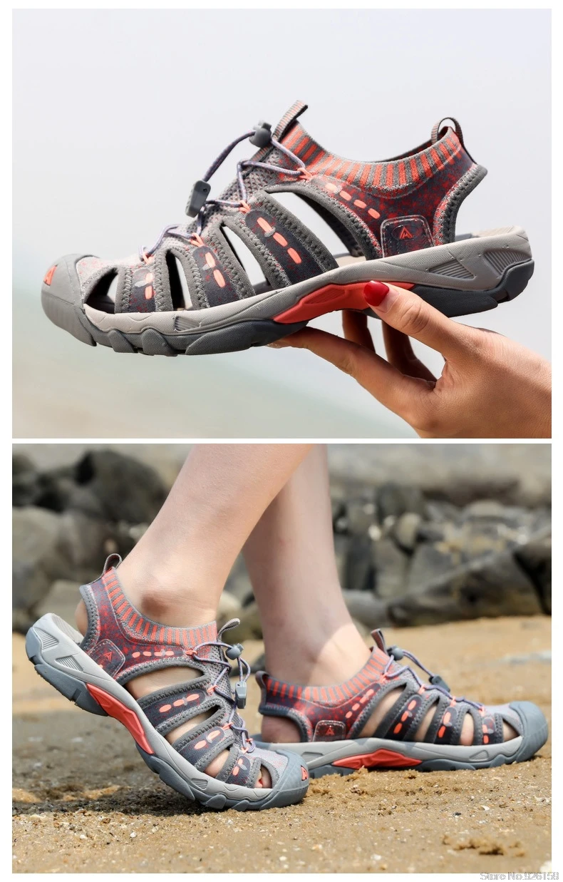 HUMTTO женские уличные босоножки; Большие размеры; Летние Аква повседневные летние туфли на плоской подошве; Беговая Обувь, пляжная обувь; Дышащие тапочки; Женские туфли с открытым носком Пешие прогулки обувь