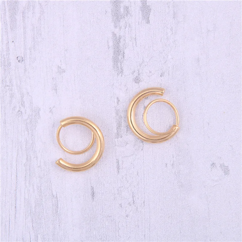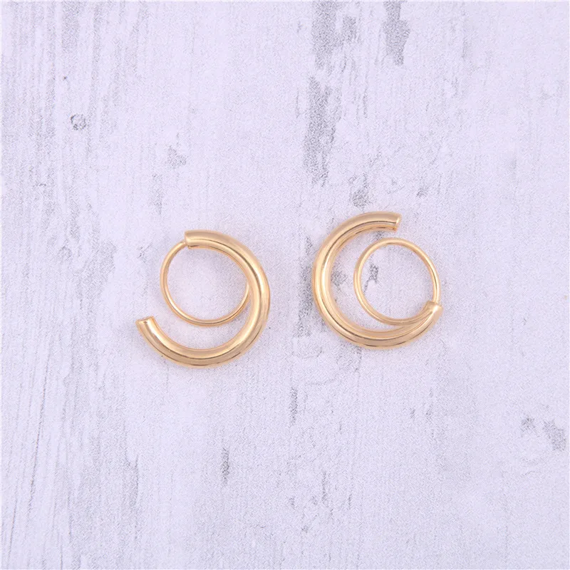 Женские двойные серьги-кольца huggie, позолоченные Обручи из нержавеющей стали с витой петлей, Минималистичная Мода