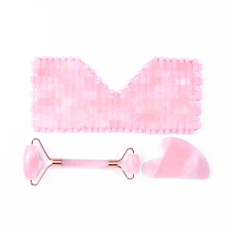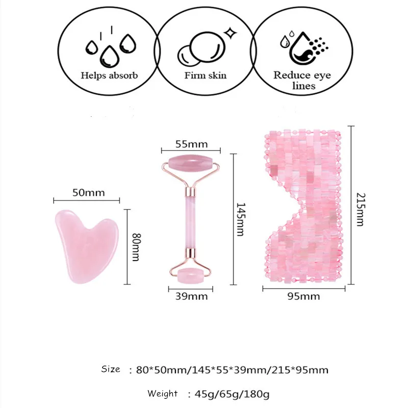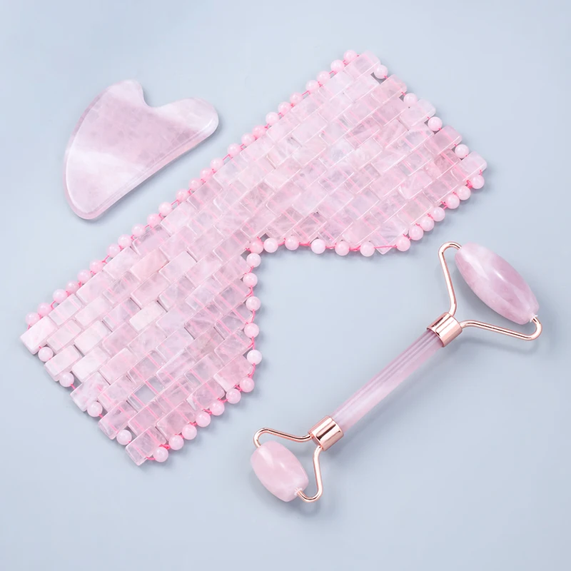 Натуральный розовый кварц ролик для лица гуаша скребок маска для сна набор ледяной Нефритовый камень тело глаз терапия Diy спа Релаксация уход за кожей Инструмент
