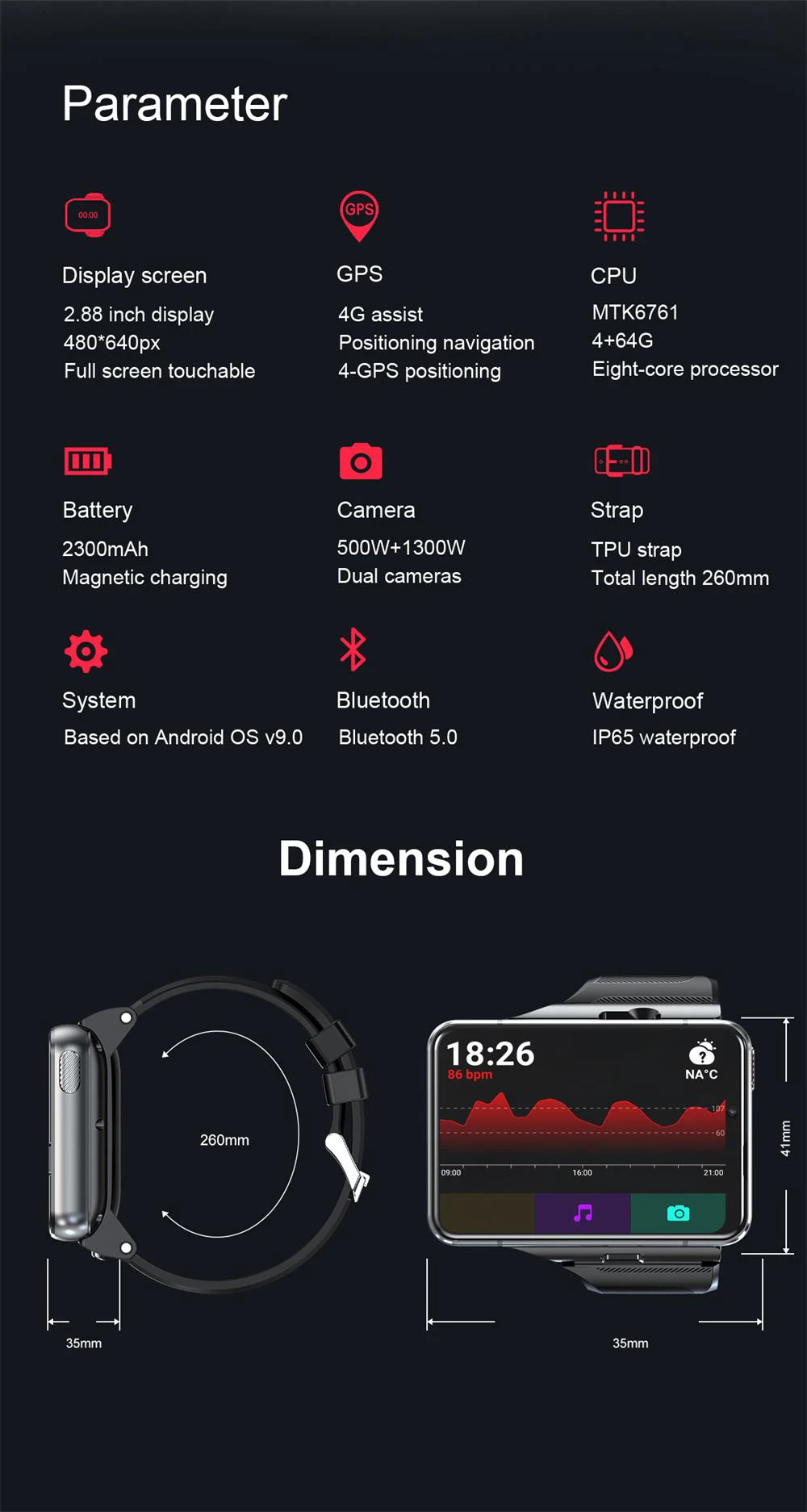 4G LTE смартфон 2,88 дюймов 480*640 Экран съемные часы телефон RAM 4 Гб ROM 64 Гб Камера 13 МП 2300 мАч батарея Smartwatch