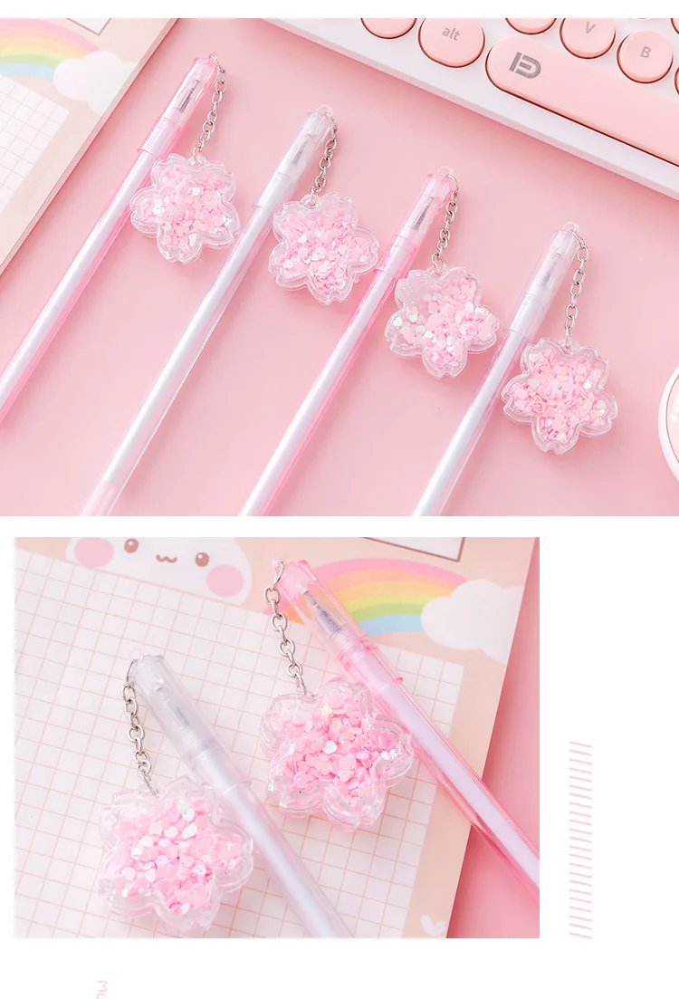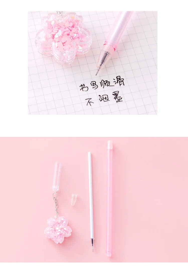 Кавайные розовые гелевые ручки с цветами вишни для девочек, милые цветы сакуры, черные чернила 0,5 мм, школьные ручки, канцелярские принадлежности, Подарочные принадлежности для письма