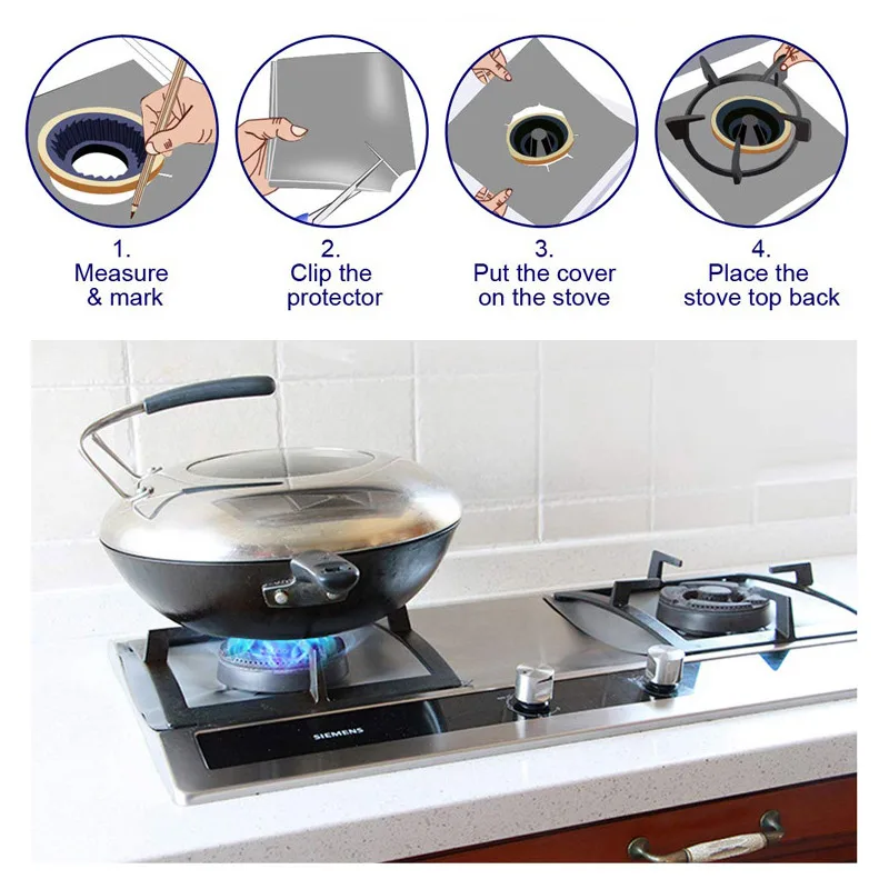 -Для газовой плиты поставьте протекторы под решетку горелки под пламенем. Протектор должен быть чистым от любого пламени, чтобы избежать возможных травм или повреждения продукта