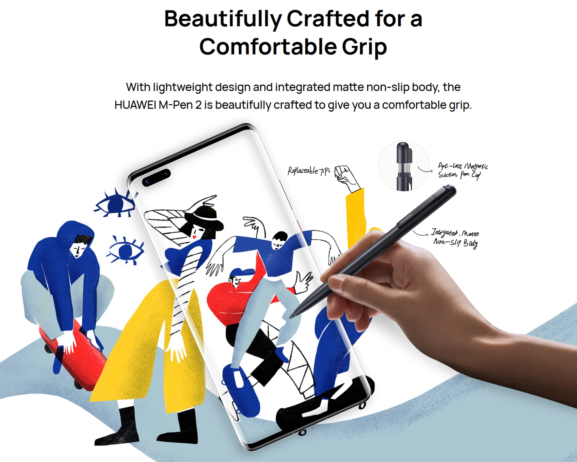 With lightweight design and inergrated matte non-slip body,the HUAWEI M-Pen 2 is beautifully crafted to give you a comfortable grip.