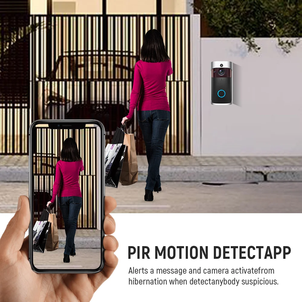 6. Поддержка обнаружения движения PIR, когда кто-то поднимается у двери, немедленно оповещает push-уведомления на мобильный телефон.