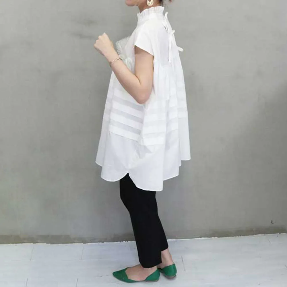 $28,51Корейская футболка, весенняя одежда, винтажная черная белая блузка, элегантная Офисная Женская блузка с воротником-стойкой, большие женские топы с завязками на спине, повседневнаяКупить сейчас