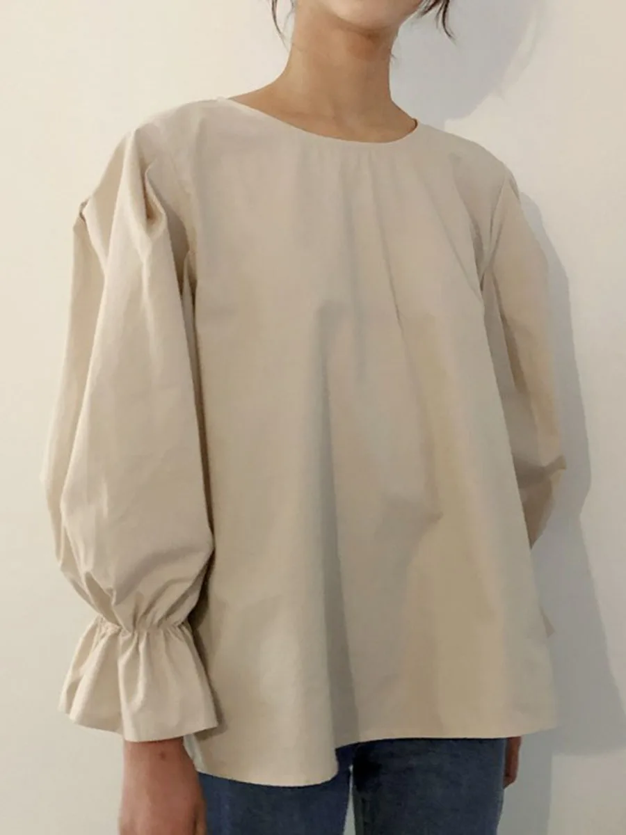느슨한 여성 카키 블라우스 2021 봄 여름 캐주얼 скачать 패션 셔츠 스탠드 칼라 티 한국 일본 여성 풀오버 탑 скачать 패션 새로운