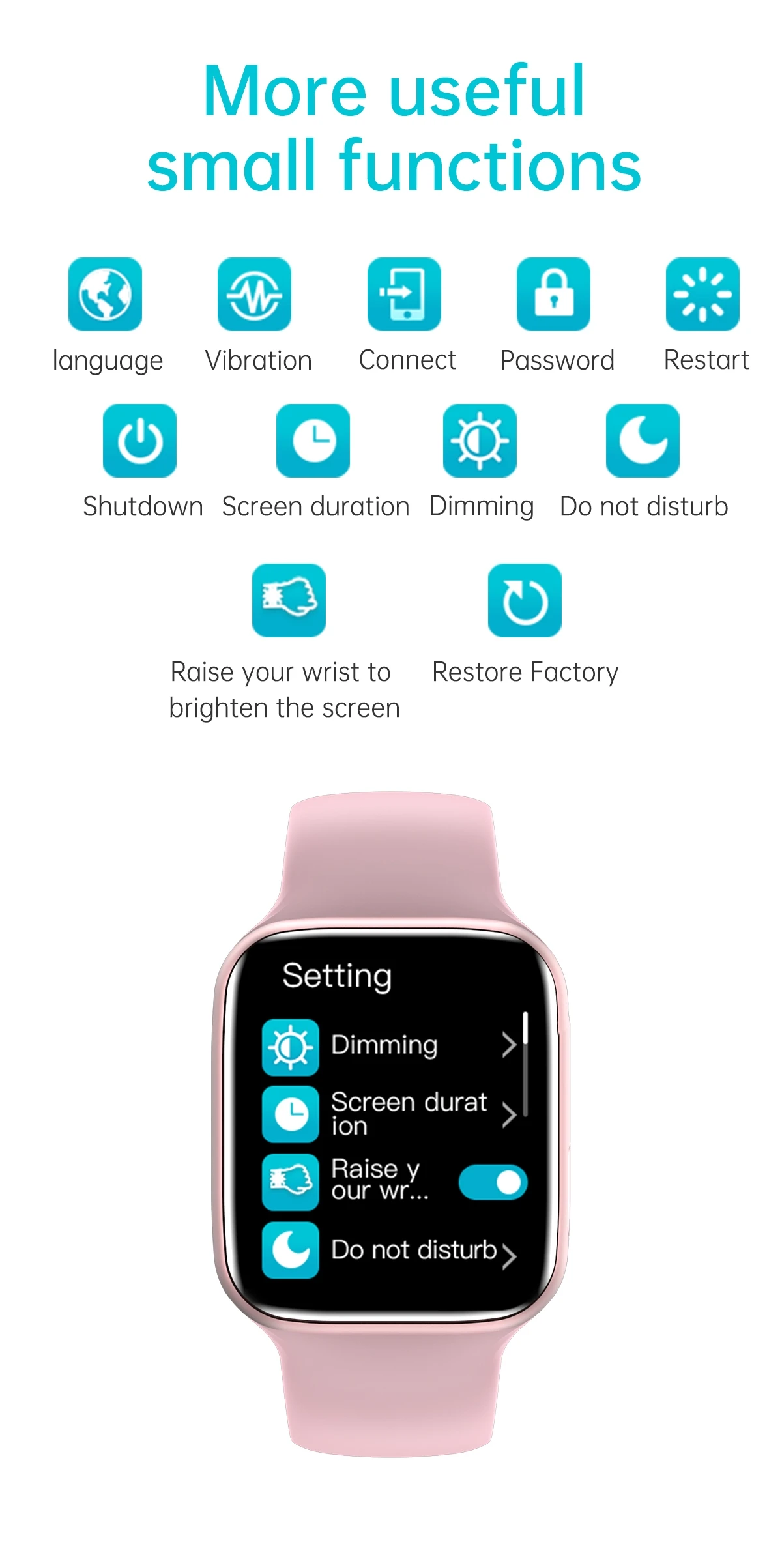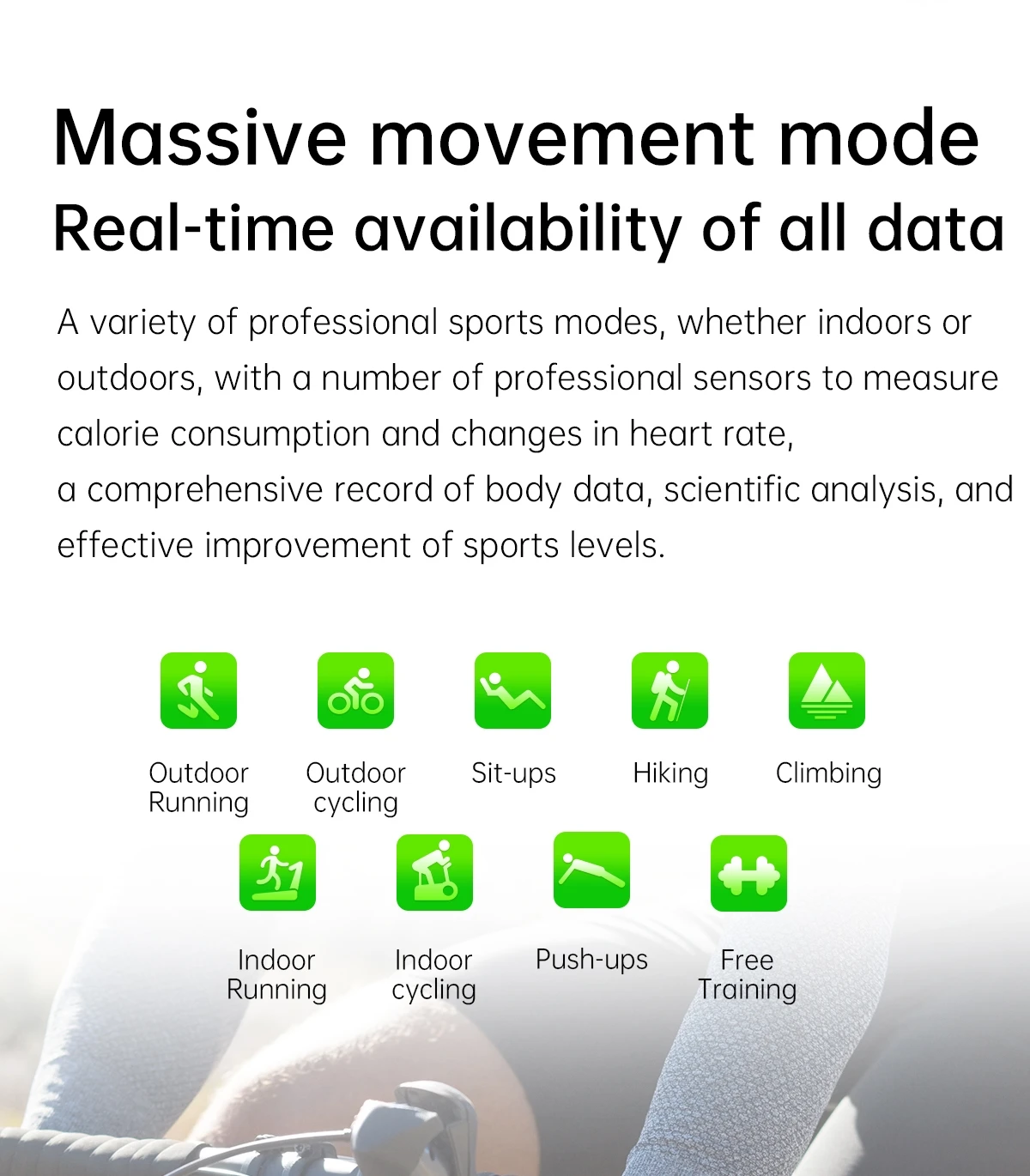 1. Следите за своим здоровьем: Трекер сна, пульс/кровяное давление/мониторинг кислорода в крови, дыхательные упражнения. 2. Хороший помощник для тренировки: Шагомер, пройденное расстояние/сожженные калории, спортивные режимы. 3. Хороший помощник для повседневной жизни: BT телефонные звонки, синхронизация уведомлений, BT Музыка, пульт дистанционного управления камерой, несколько циферблатов часов, пользовательские лица, секундомер, напоминание о воде, напоминание о сидячем положении, погода, будильник, пароль и т. Д.