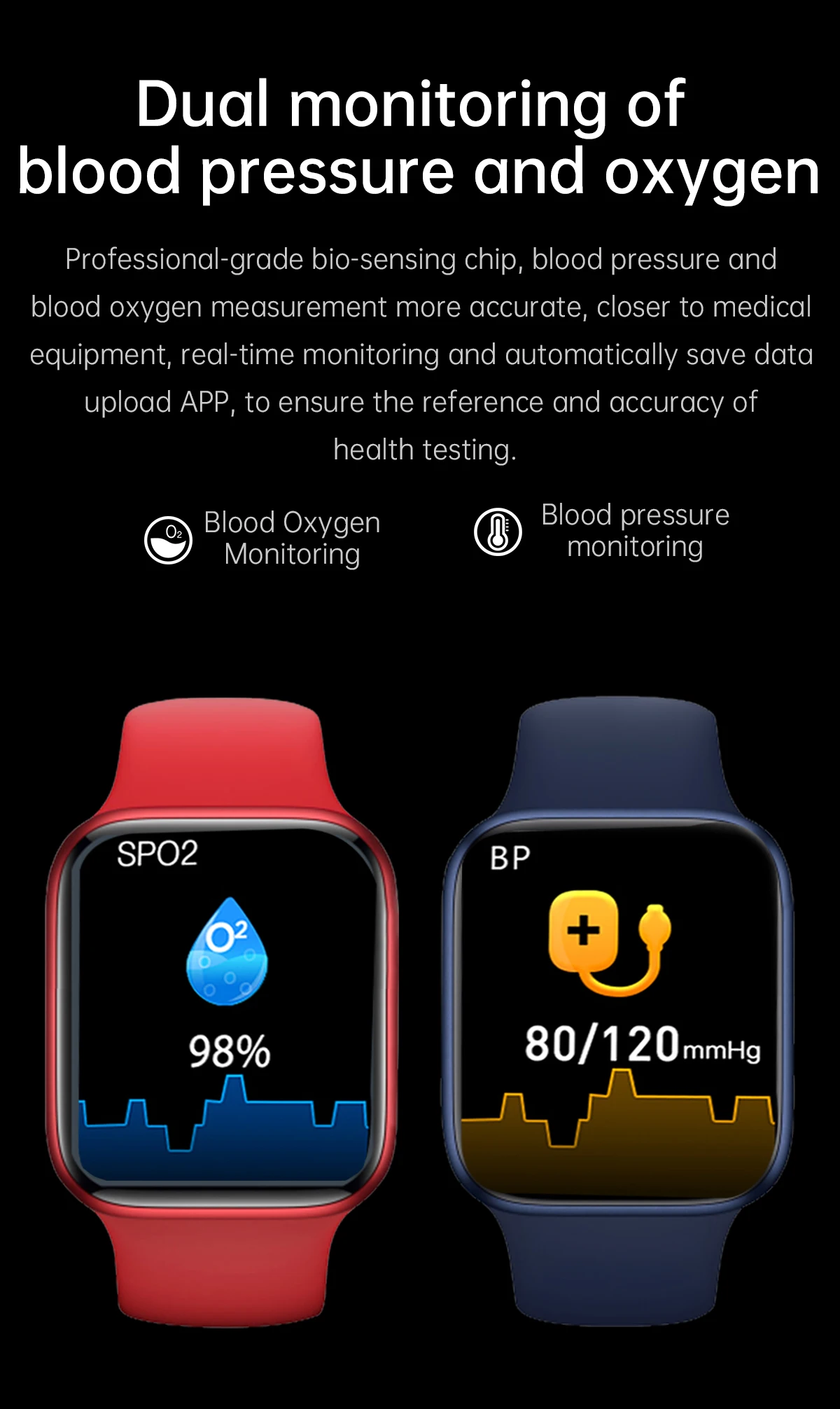 Профессиональное био-зондирование чип, кровяное давление и измерение уровня кислорода в крови более точным, ближе к медицинскому оборудованию, мониторинг в реальном времени и автоматическое сохранение данных загрузки приложения, для обеспечения справки и точности тестирования здоровья Мониторинг кислорода в крови Мониторинг Артериального Давления