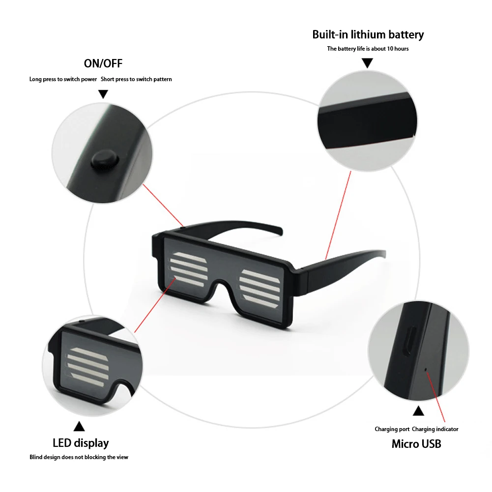* 1. Быстро ссылку очки с помощью bluetooth, может изменить свой текст, рисунок, мультипликационных фильмов для светильник на ваше сообщение.