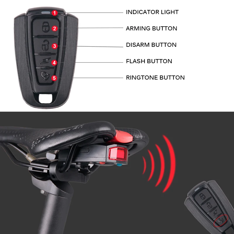 Велосипедный предупреждающий световой сигнал пульт дистанционного управления широко используется для горного велосипеда, дорожного велосипеда, парковки, езды и так далее, предназначен для A6 велосипедный предупреждающий световой сигнал.