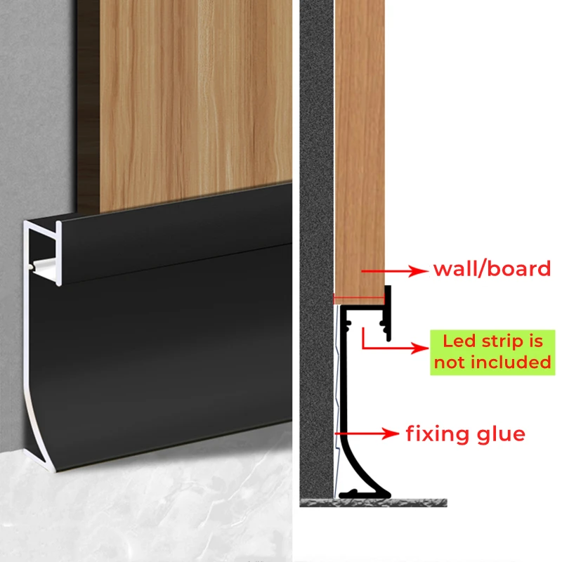 0.5m Embedded Skirting Line Aluminum Profiles LED Strip Lamps Wall Corner Milky Cover Channel Floor Stair Home Decor Bar Lights
