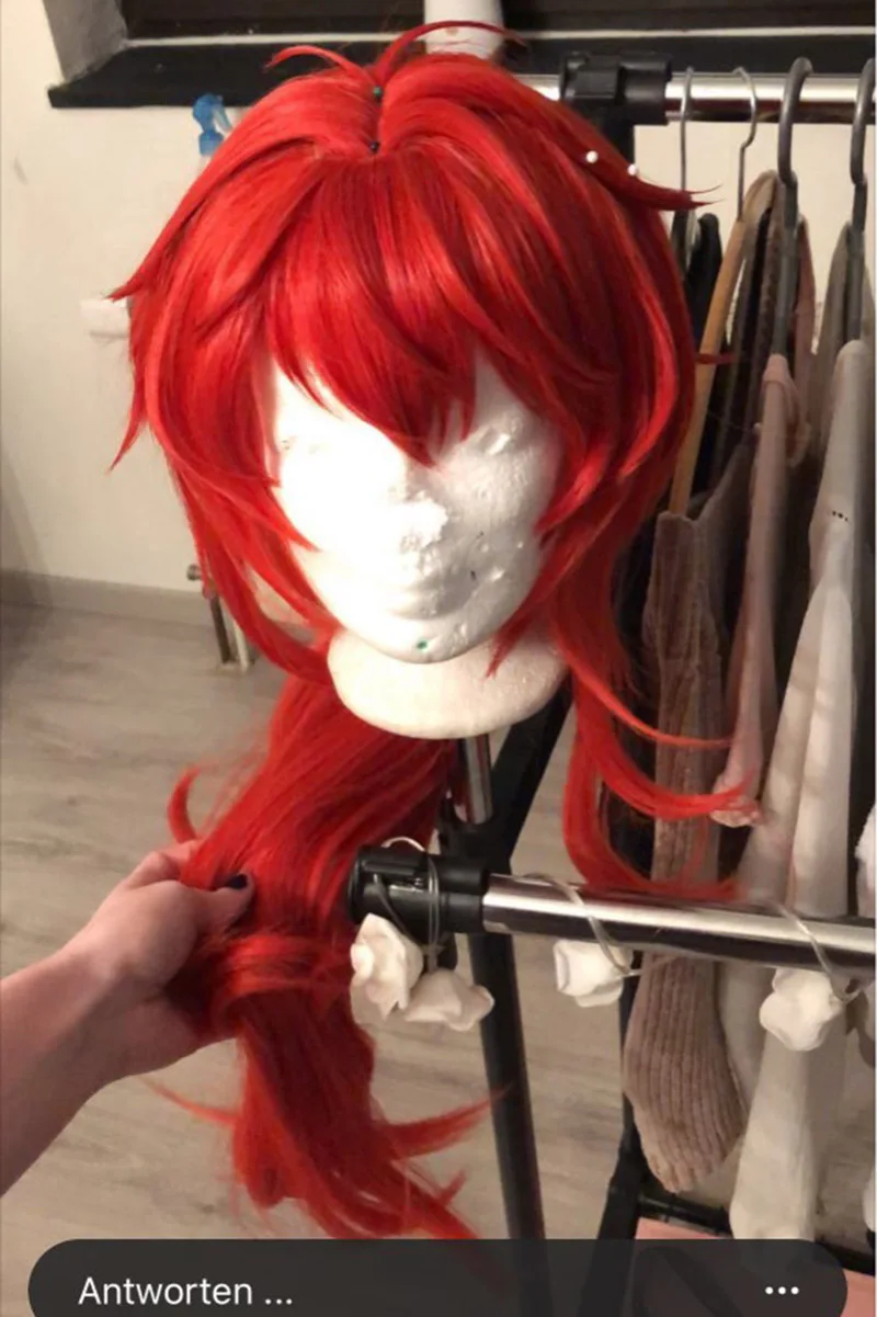 Diluc парик Genshin влияние Косплей красные волосы длинные вьющиеся стиль жаростойкие для взрослых мужчин женщин мужчин Хэллоуин ролевые игры + парик Cap