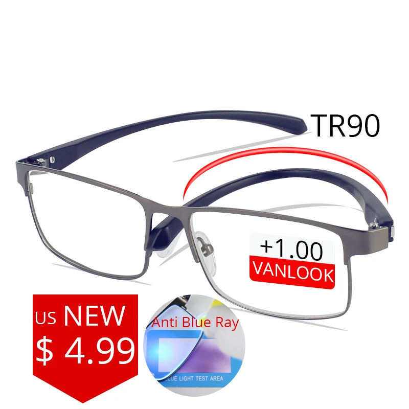 Мужские очки для чтения Vanlook, очки с защитой от синих лучей из нержавеющей стали TR90, 1,5, 2,0, 2,5, 3,0, 3,5, 4,00