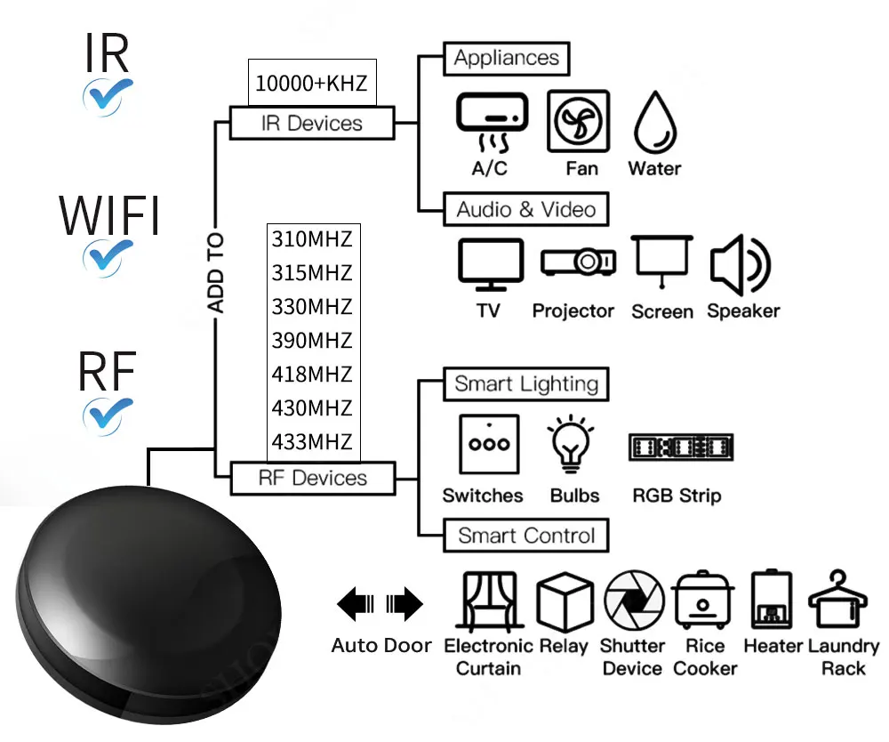 Ответ: он разработан для ИК и RF и подходит для контроллеров «все в одном». Вы можете купить нужное оборудование в соответствии с вашей собственной частотой