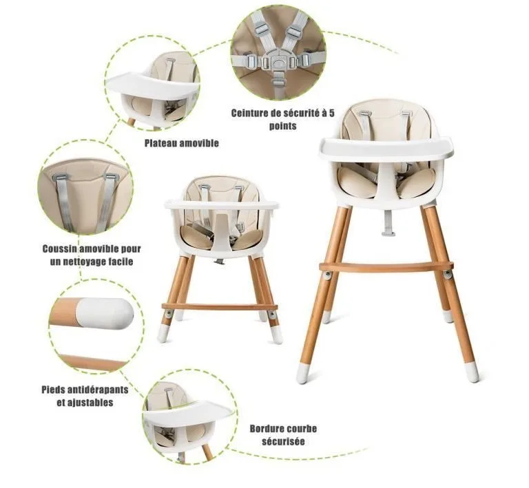 Подходящее место: в гостиной, столовой или вне отеля, ресторана и т. д. можно использовать этот детский деревянный стул с высокой ножкой в комплекте