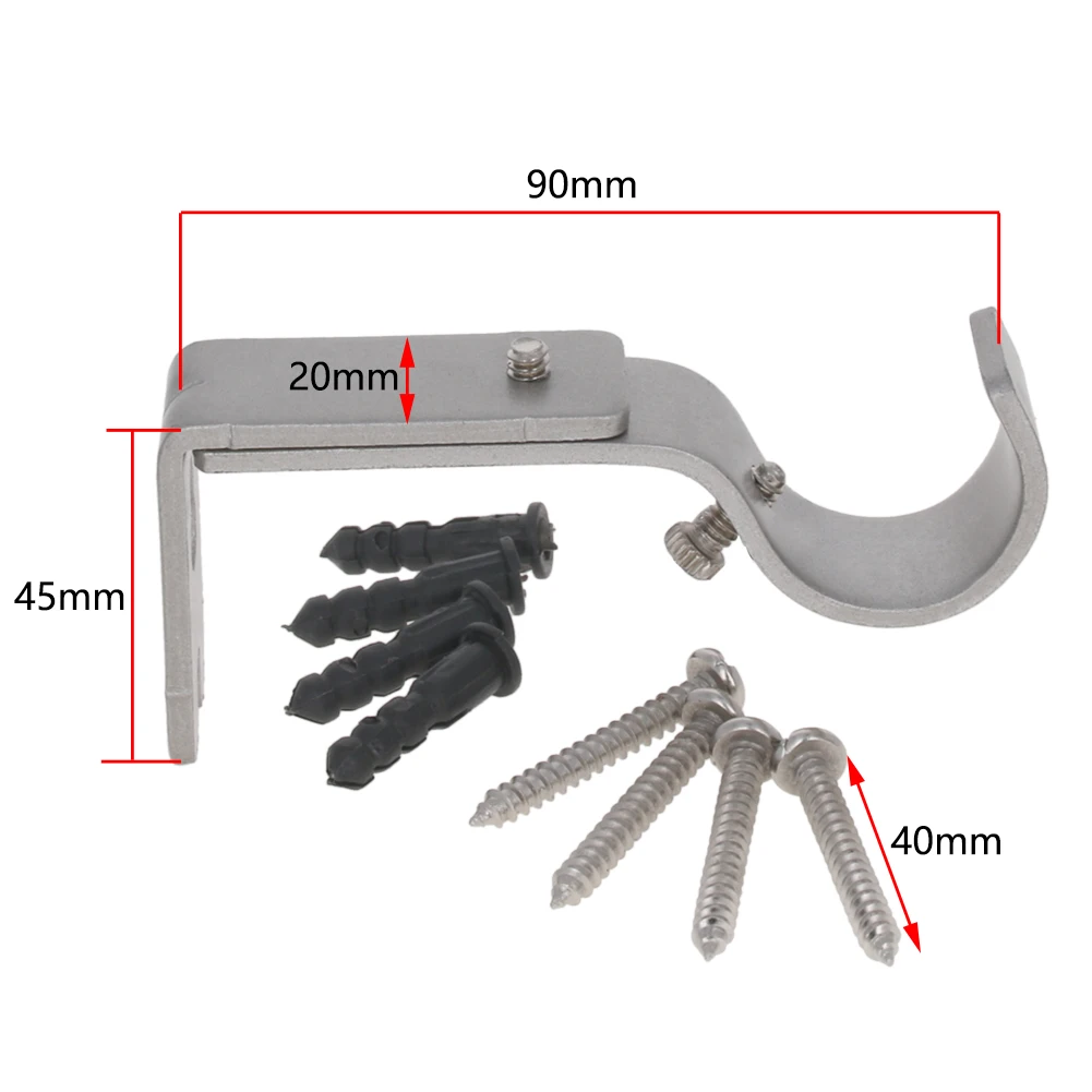 These curtain rod brackets made of aluminum alloy, fit for 22.4-25.4/16-19.05mm diameter curtain rod.