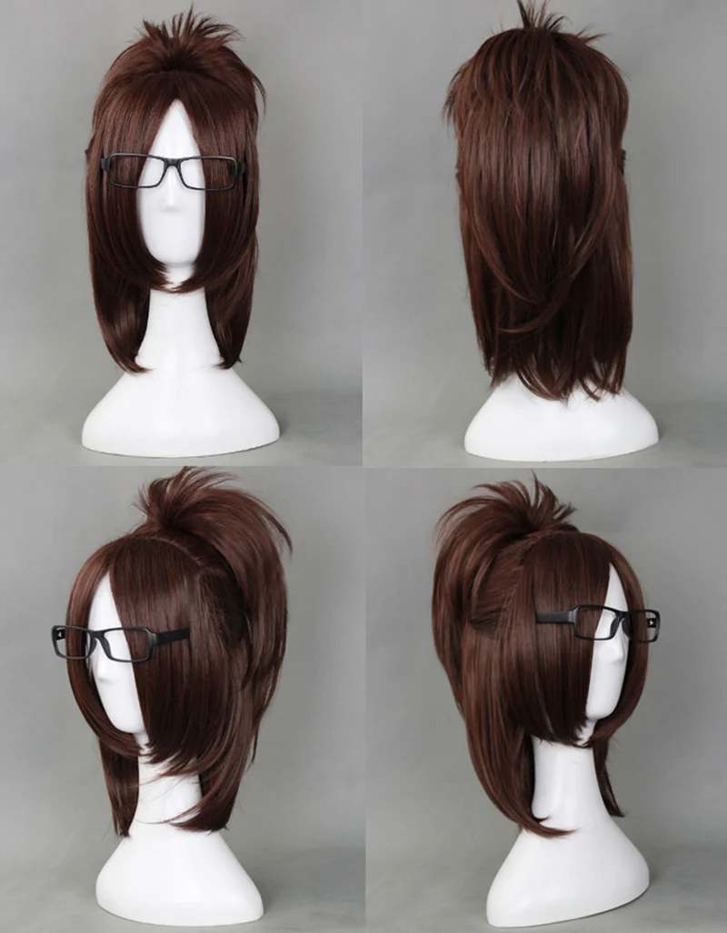 Парик для косплея «Атака Титанов» Hange Zoe, 40 см, короткие прямые коричневые женские парики из искусственных волос, парик, шапочка, очки для косплея