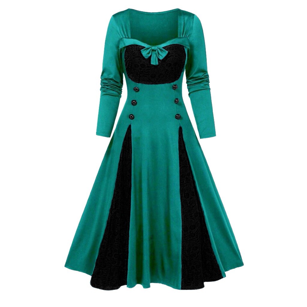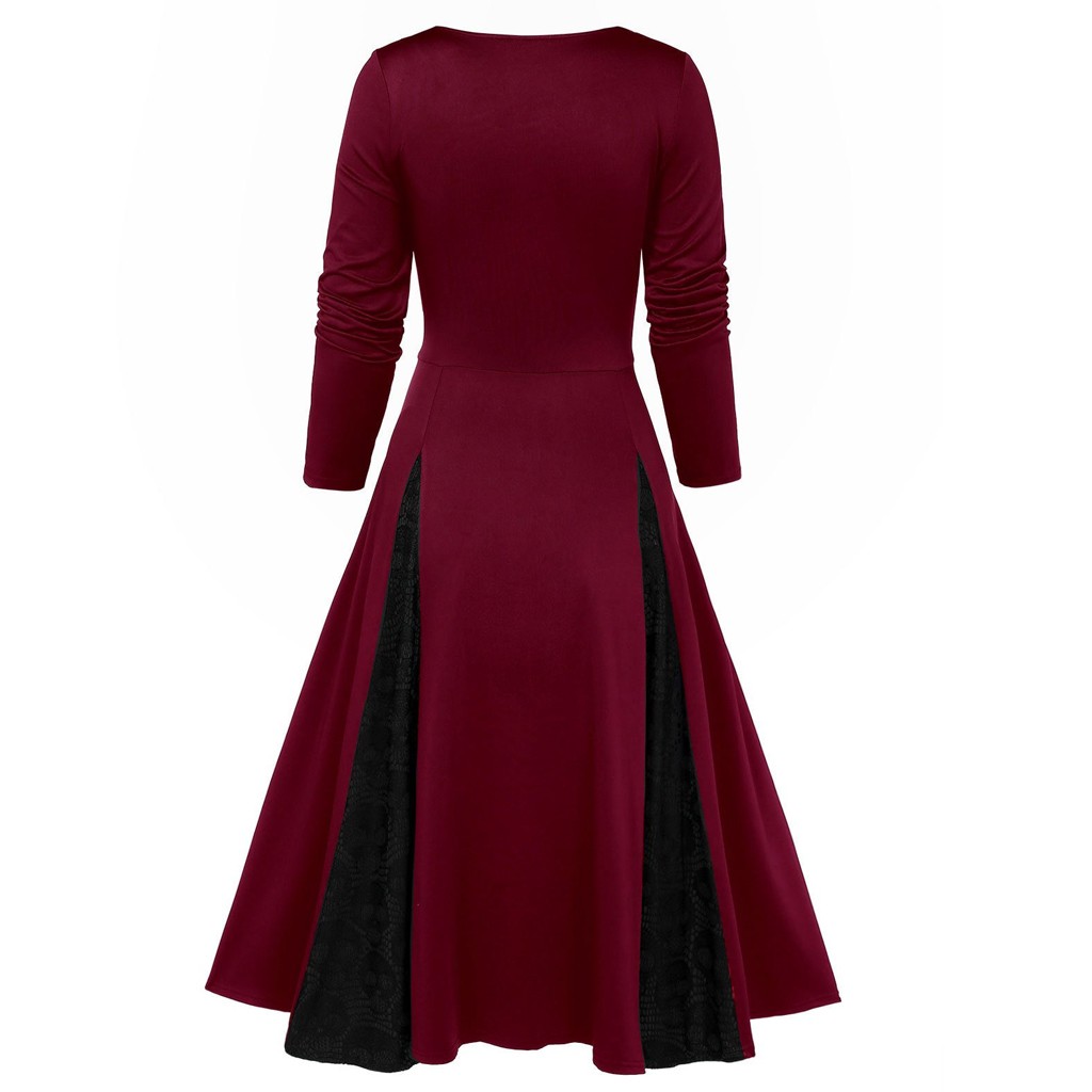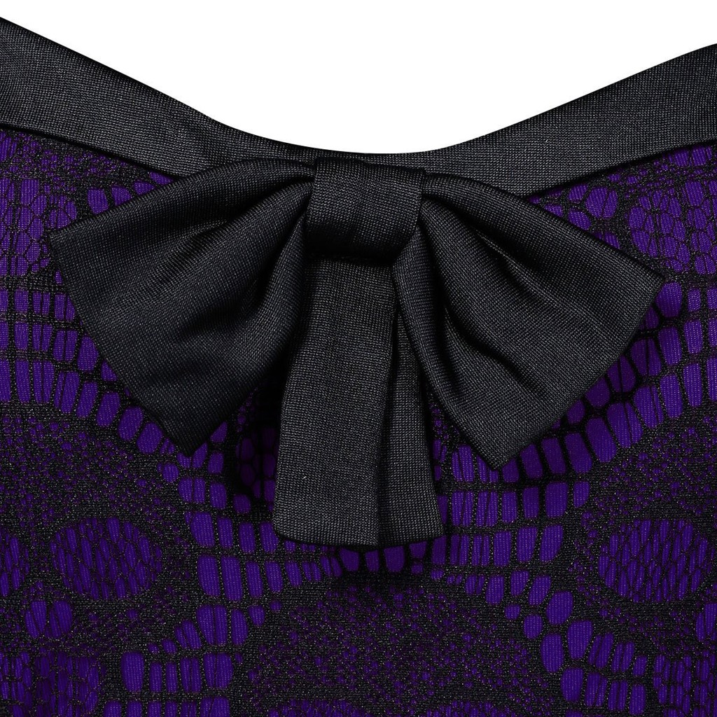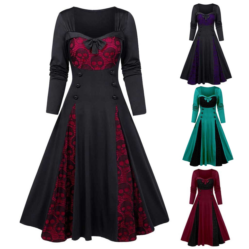 Women Plus Size Halloween Skull Lace Insert Mock Button Bowknot Dress