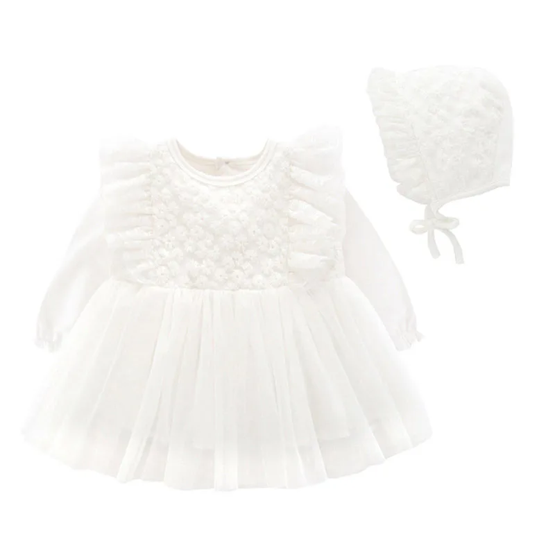 Комплект из 2 предметов, новое Хлопковое платье с длинными рукавами и цветочной вышивкой для маленьких девочек на день рождения, крестины, с шапкой, на возраст от 0 до 12 месяцев ♥Материал: изготовлен из 90% хлопка, органзы, хорошего поглощения и термостойкости ♥Посылка: 1 кружевное платье для крещения с длинными рукавами, 1 шляпа с оборками ♥Размеры: 59/66/73/80, подходит для 0-12 мес., Bebies, для девочек ясельного возраста, для маленьких девочек, для малышей ♥Украшение платья: Изысканная Цветочная вышивка, двухслойная кружевная вспышка ♥Особенности: трехслойные юбки