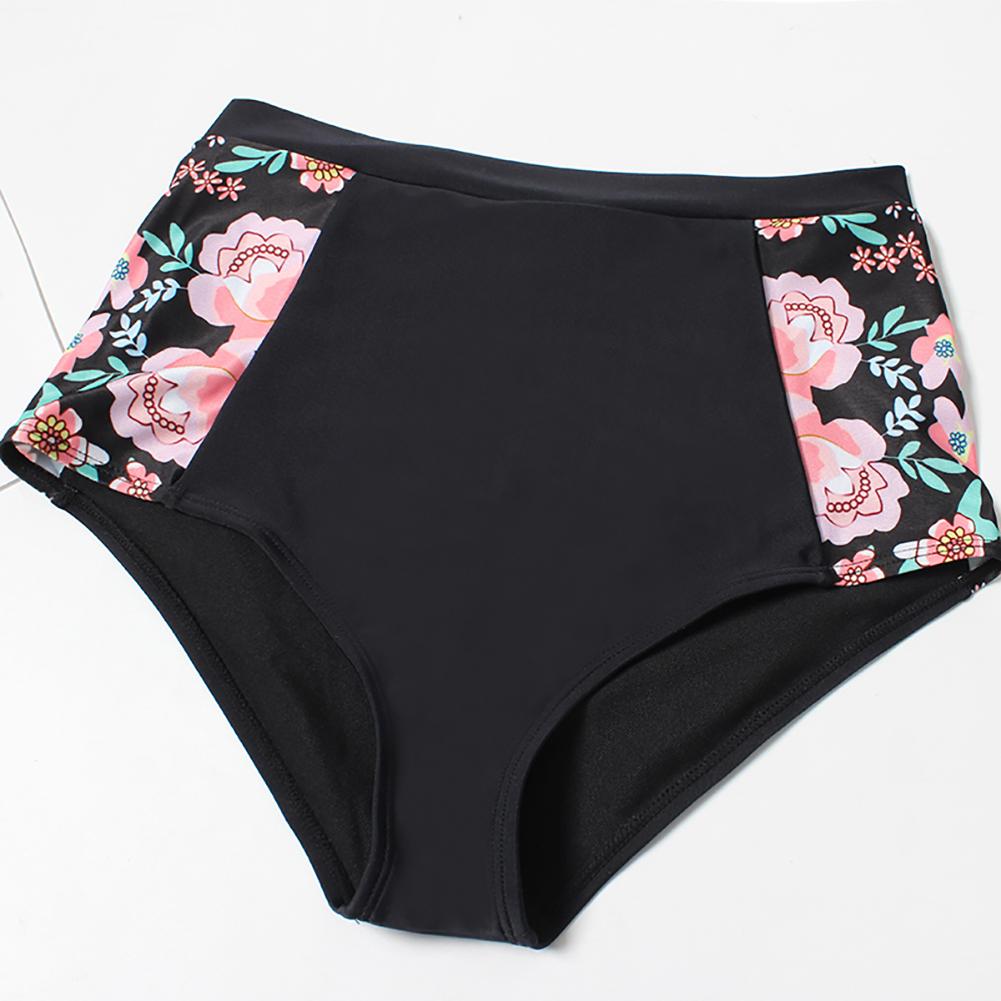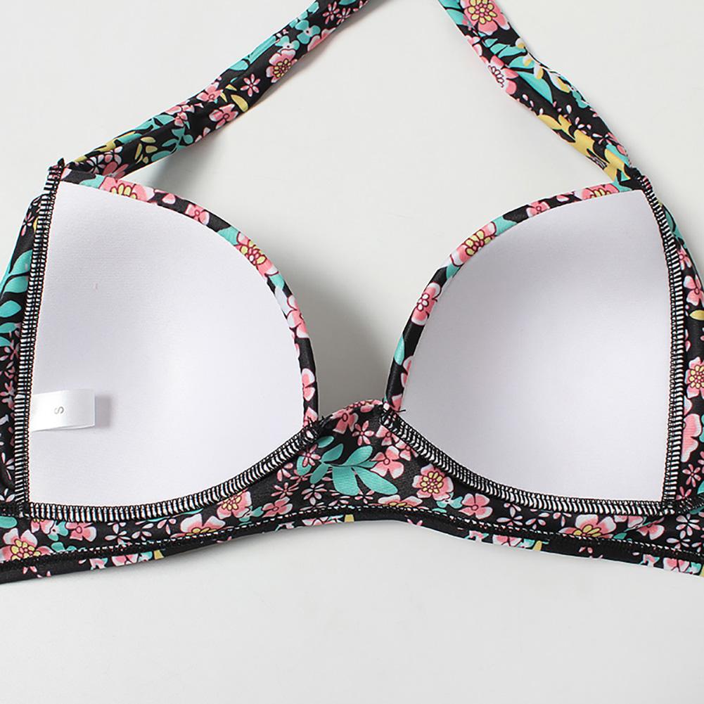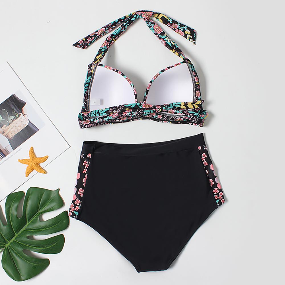 Женский сексуальный купальник с цветочным принтом, комплект бикини без подкладки, бюстгальтер с лямкой на шее, трусы с высокой талией