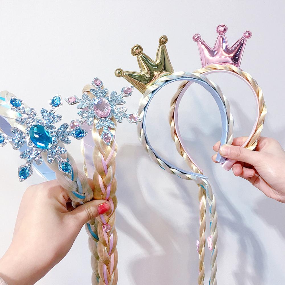 Детская корона принцессы для девочек; Плетеный парик со снежинками; Обруч для волос; Повязка на голову; Костюм