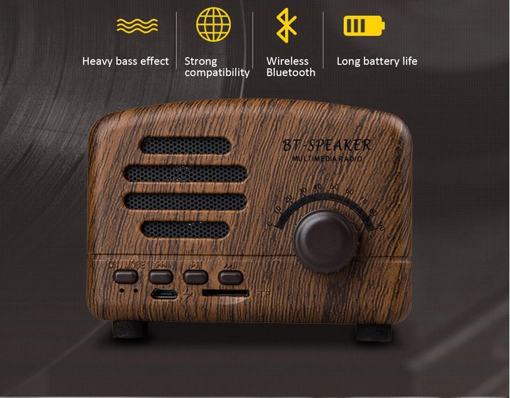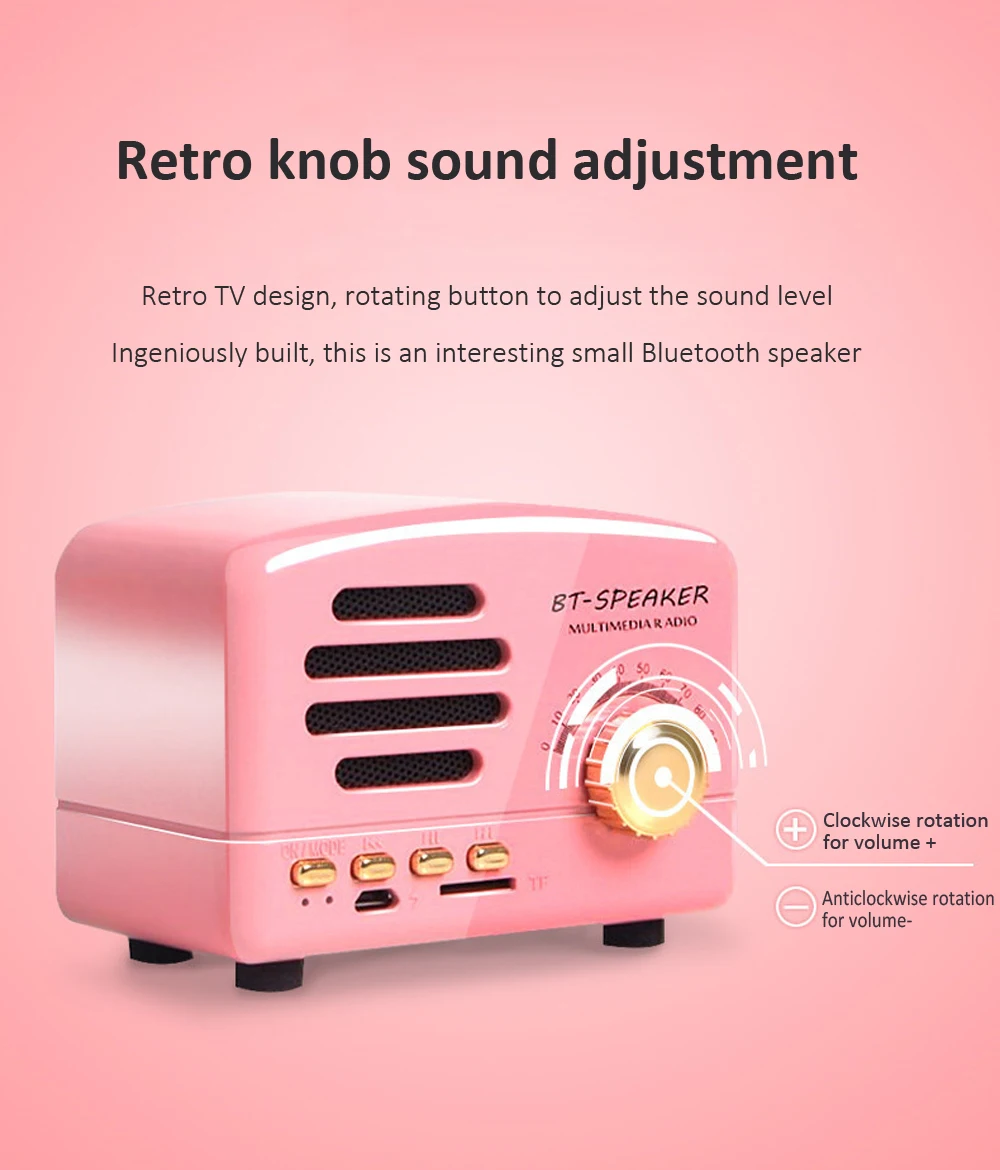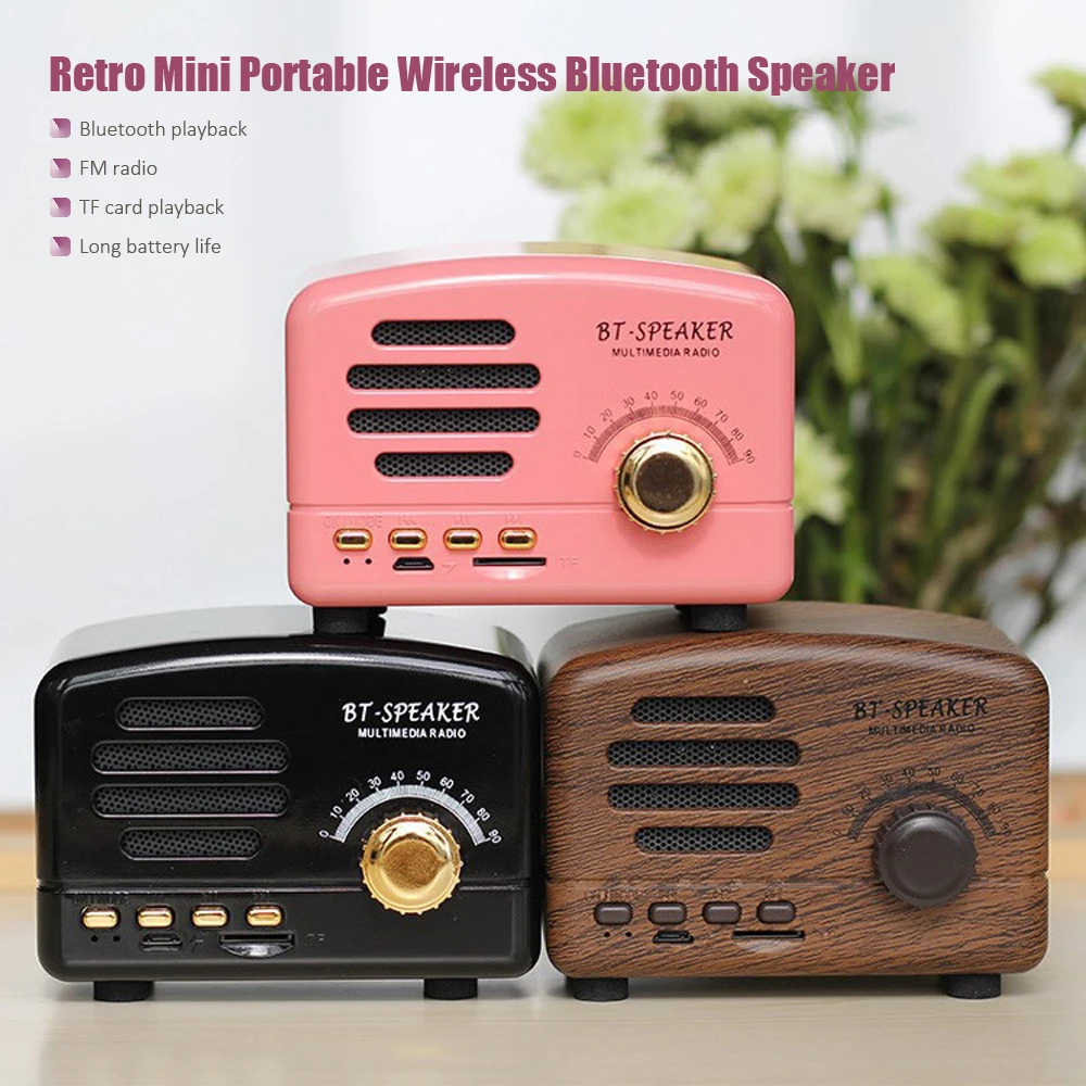 Ретро Bluetooth динамик Портативный беспроводной BT5.0 динамик Крытый/Открытый Lound Динамик с мощным басом Поддержка TF карта/FM
