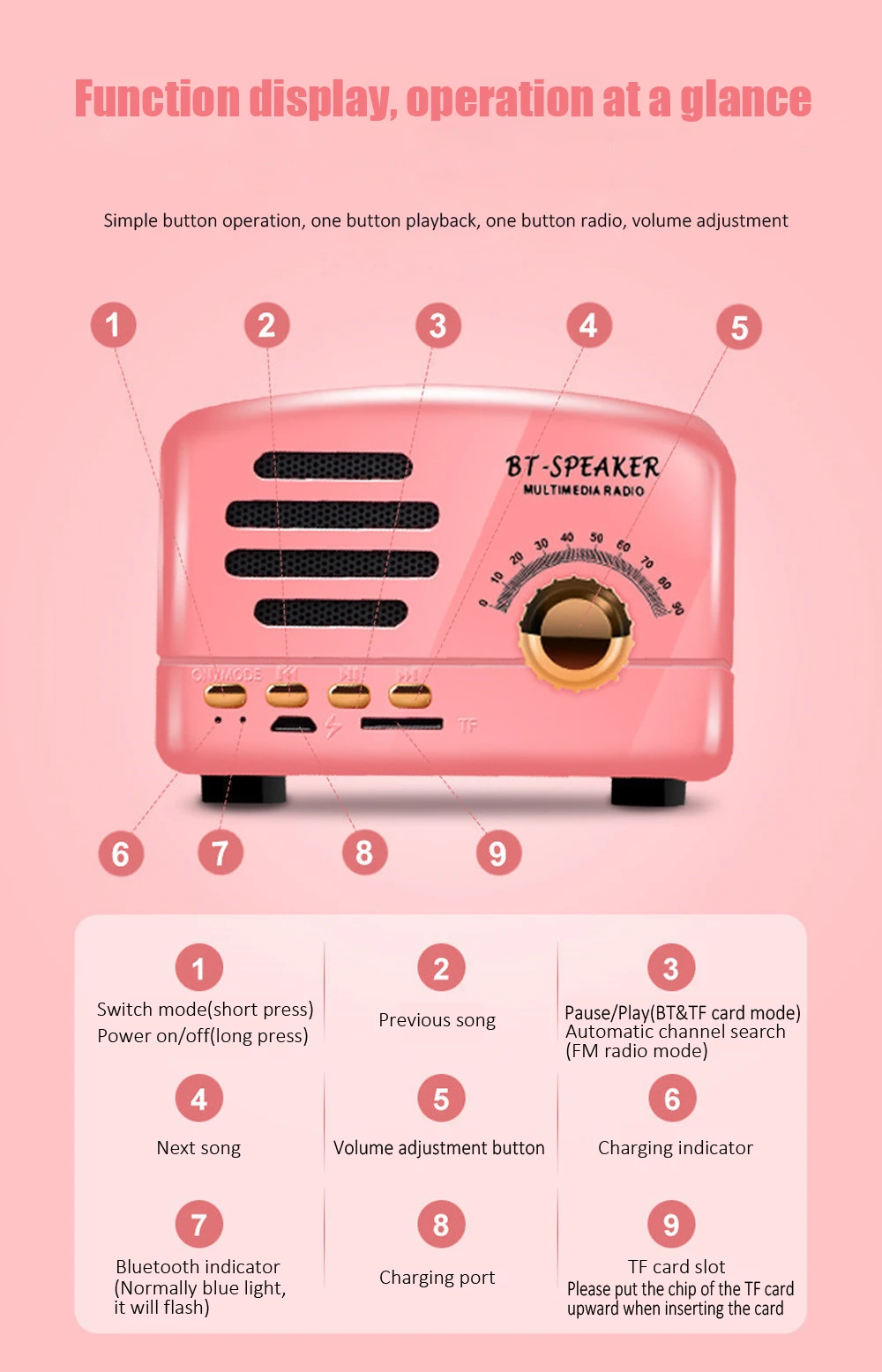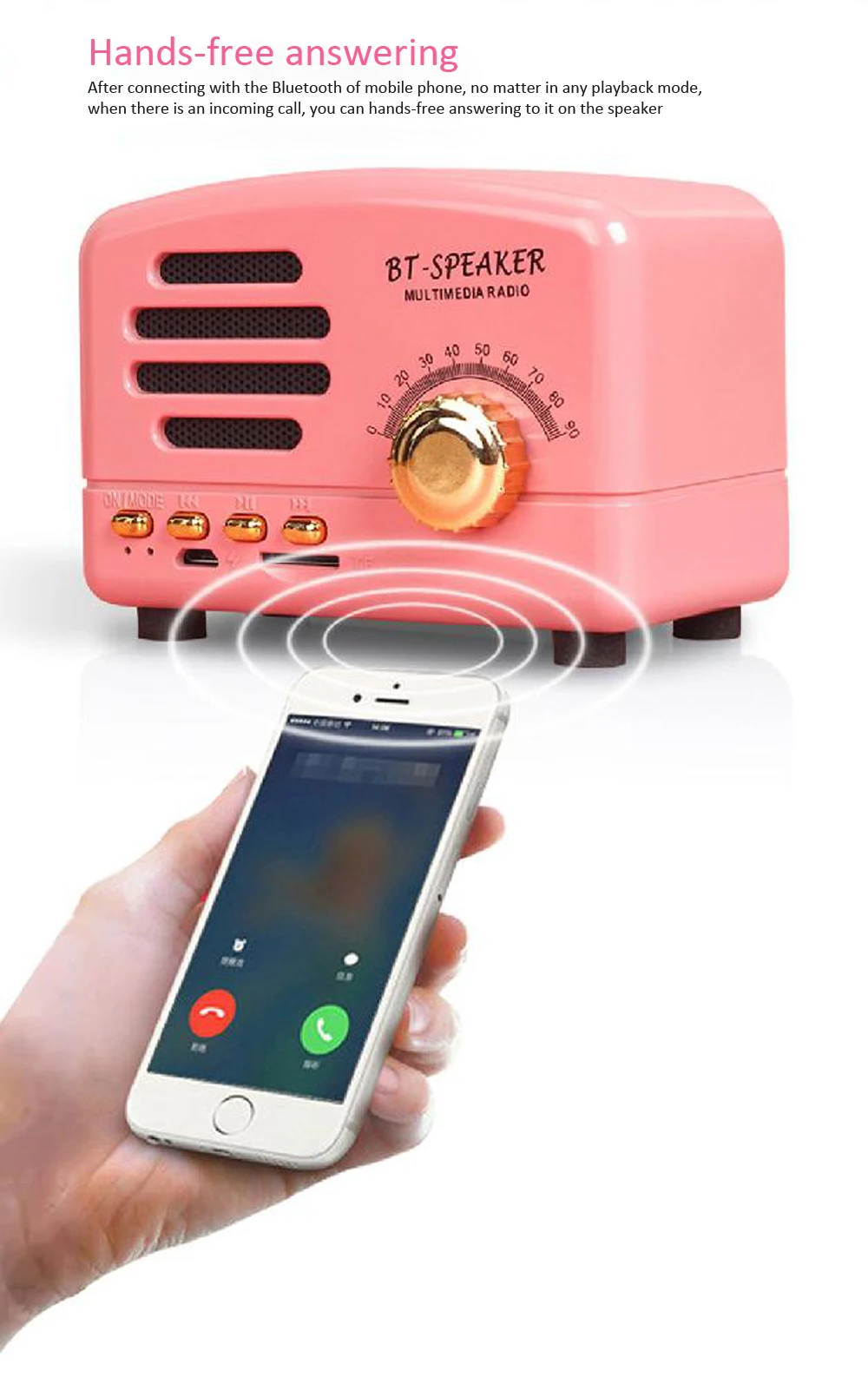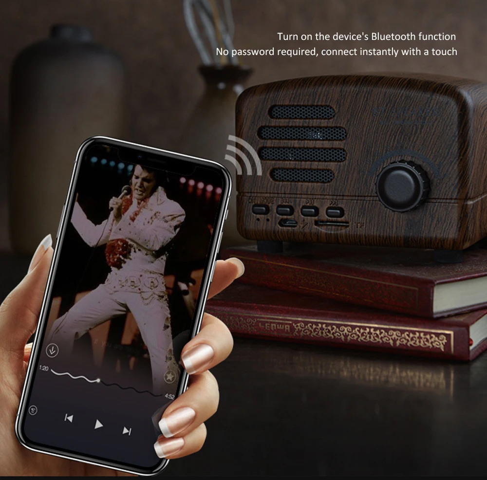 Ретро Bluetooth динамик Портативный беспроводной BT5.0 динамик Крытый/Открытый Lound Динамик с мощным басом Поддержка TF карта/FM