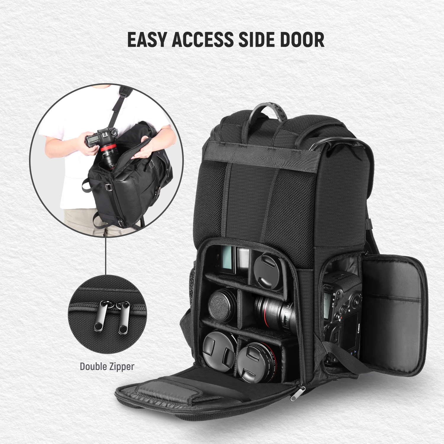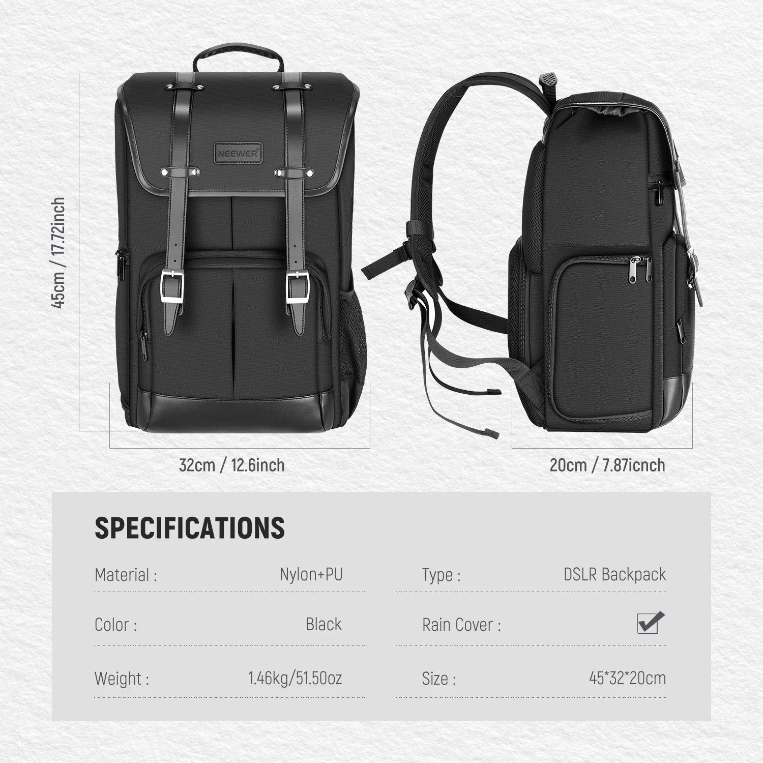 Рюкзак для камеры Neewer, прочный водонепроницаемый чехол для камеры, рюкзак для фотосъемки с дождевиком для DSLR камеры, объектива и аксессуаров (черный)