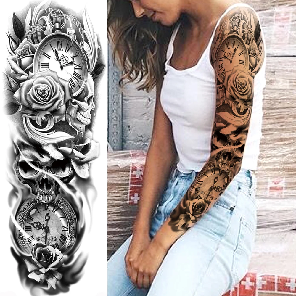 Временные татуировки дьявола для мужчин, женщин, мужчин, взрослых, поддельные компасы, Череп, татуировки маори, наклейки на рукавах, черный Бог, компасы, тату, паста