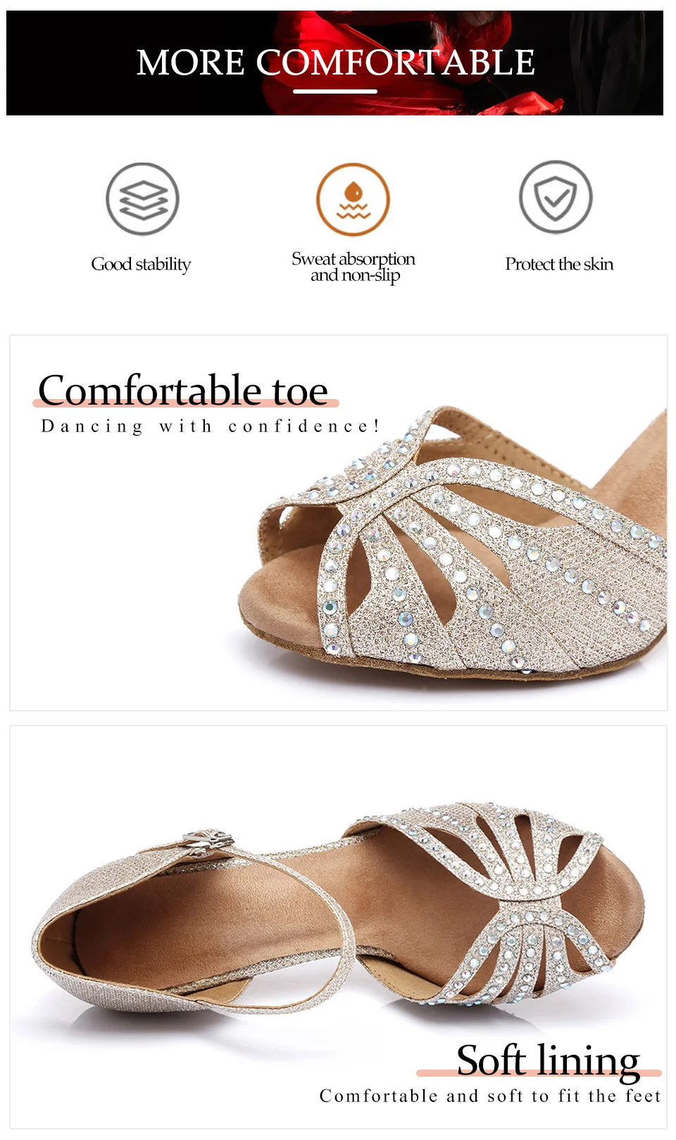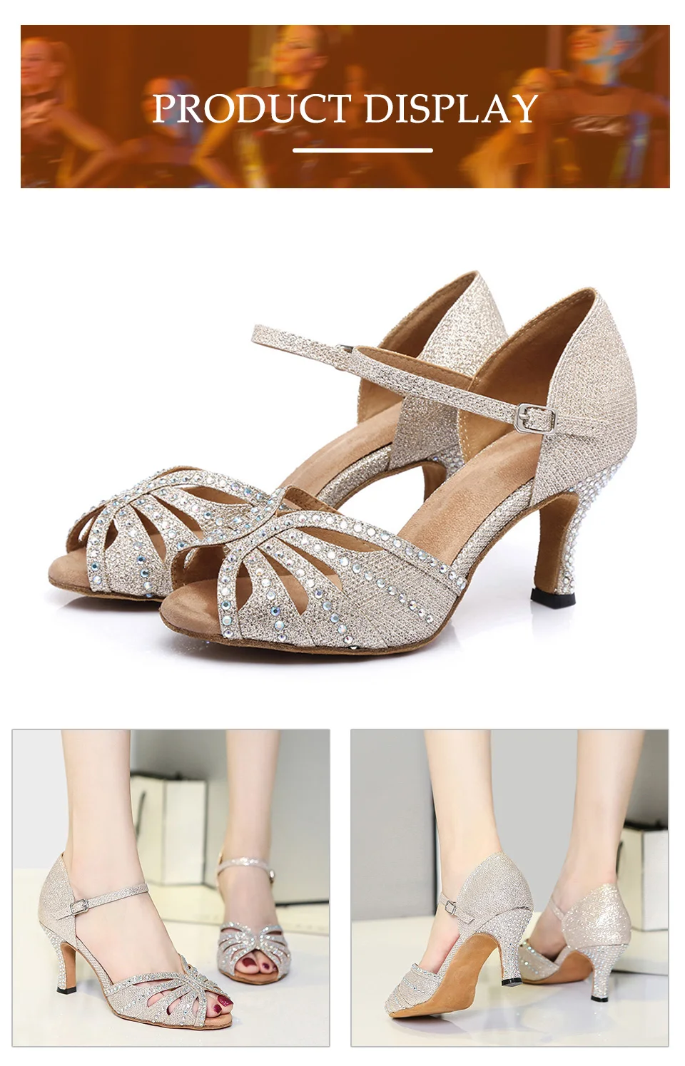 Применимые люди: женщины, девочки, дамы, учителя танцев, ученики танцев, танцевальные тренеры. Применение: танцевальная обувь подходит для латинских танцев, сальсы, танго, чаши, тренировок и выступлений. Вы также можете носить его во многих случаях, таких как: танец в помещении для досуга, практика, соревнования, свадьба и т. Д.