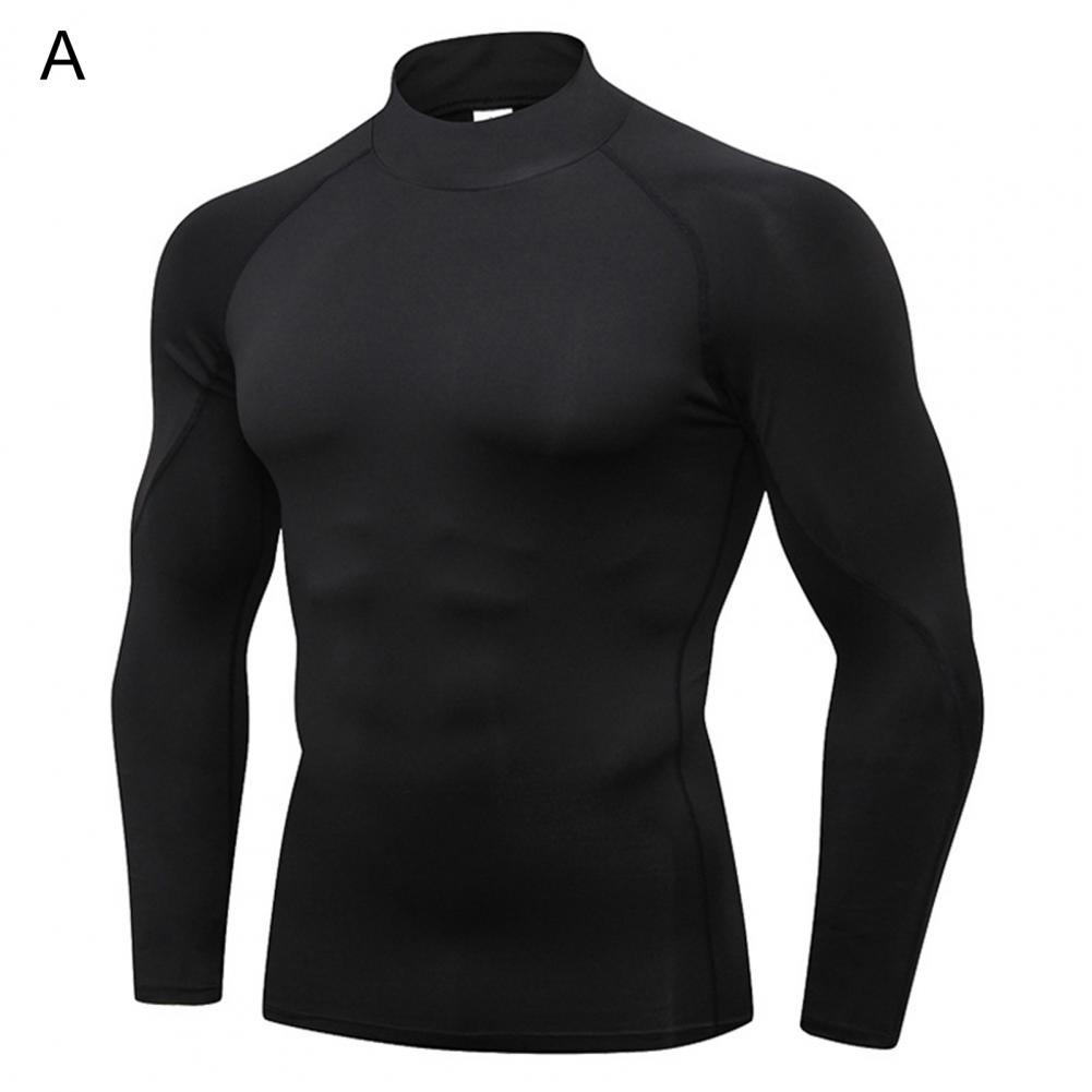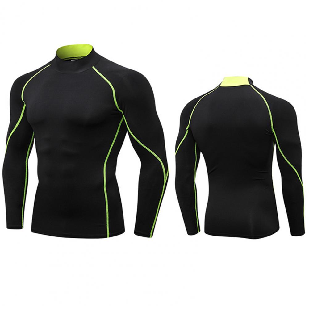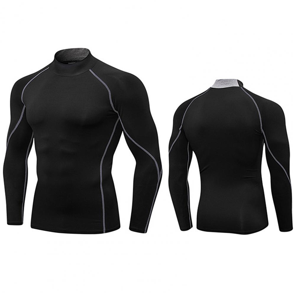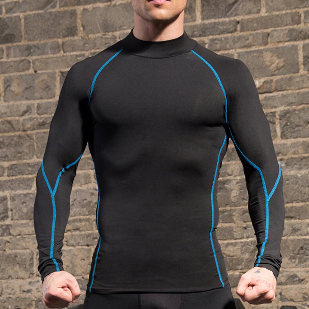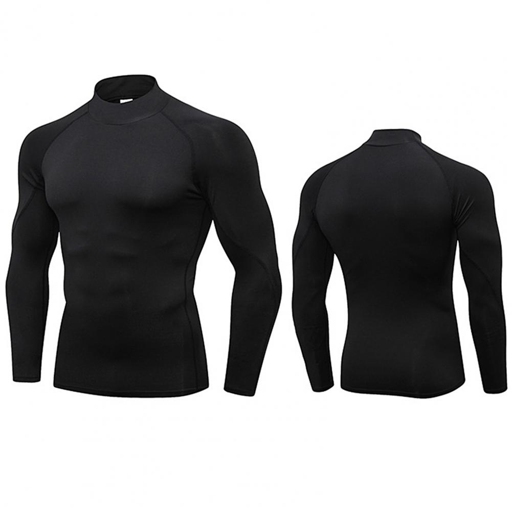 Мужская футболка с длинным рукавом для бега, быстросохнущая компрессионная Спортивная футболка с высоким воротником для фитнеса, тренажерного зала, облегающая футболка для футбола