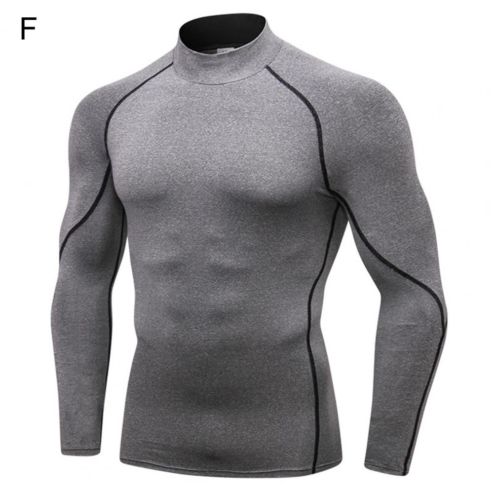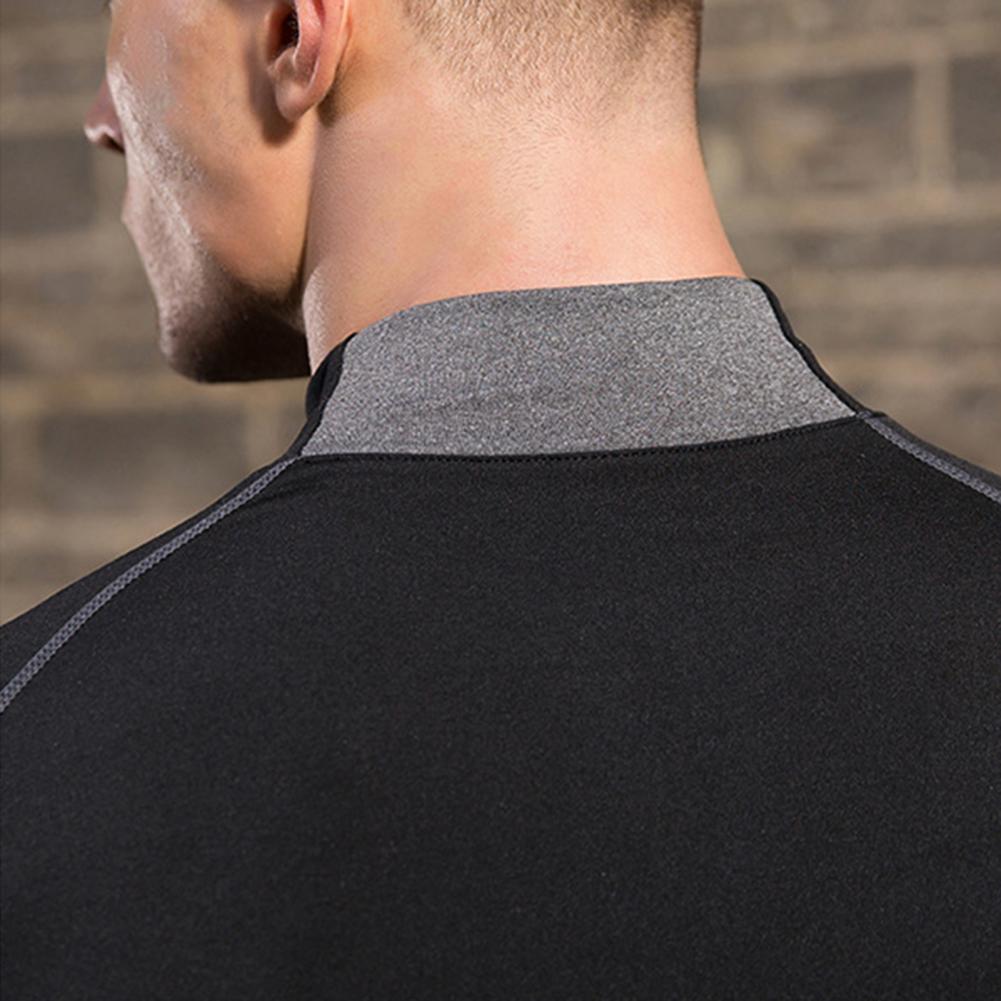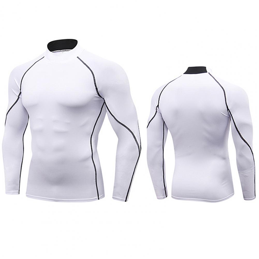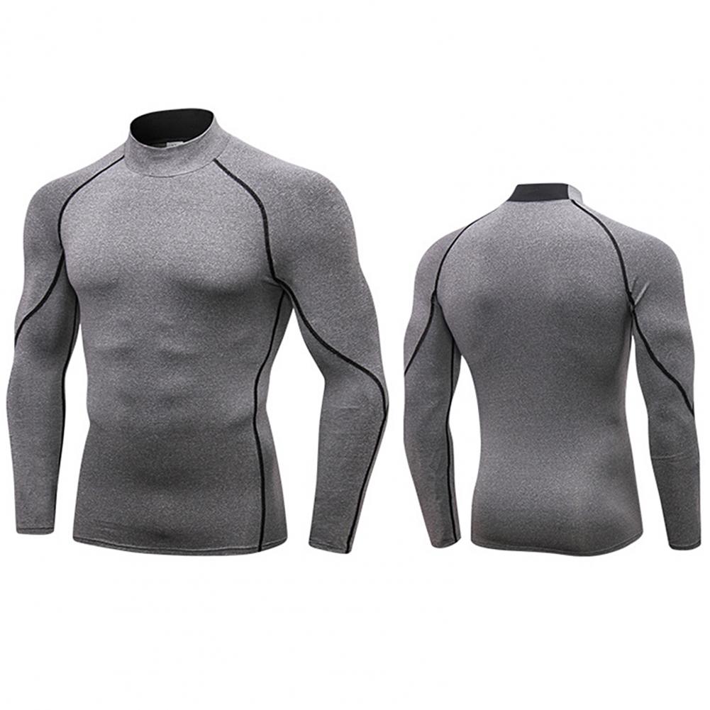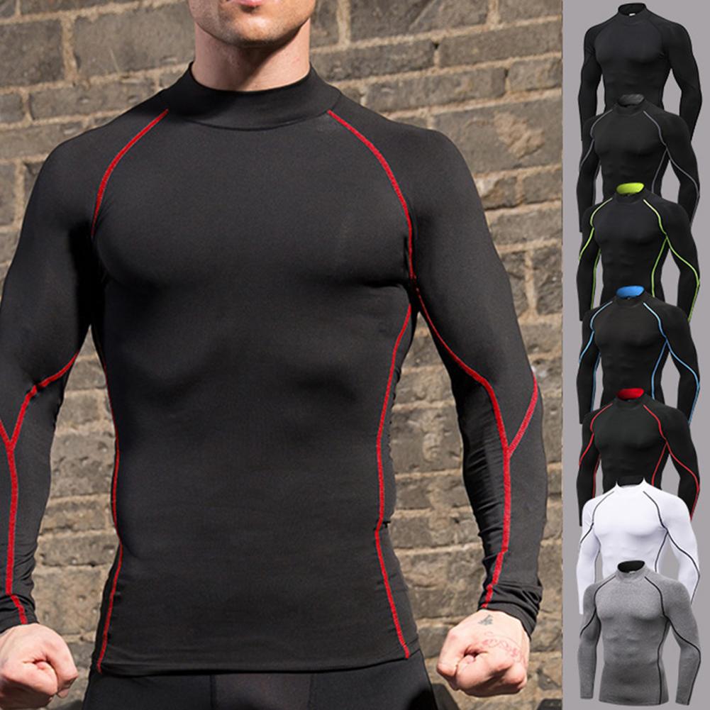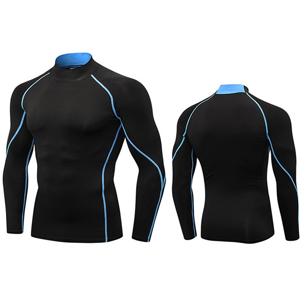 Мужская футболка с длинным рукавом для бега, быстросохнущая компрессионная Спортивная футболка с высоким воротником для фитнеса, тренажерного зала, облегающая футболка для футбола